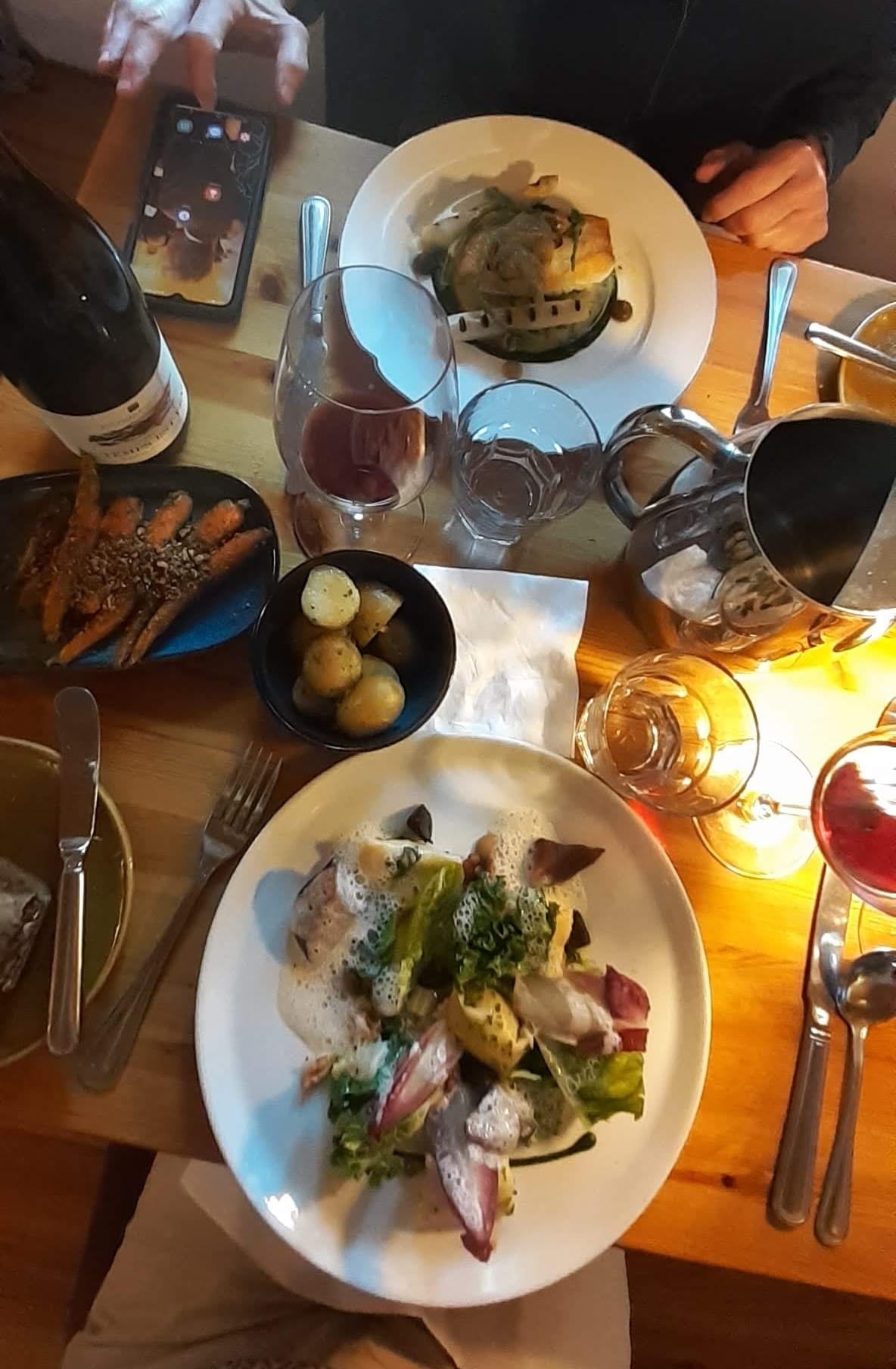 We finished the day at the Olde Glen Bar and Restaurant, a very fine dining establishment in the middle of nowhere. I had: "Agnolotti of Blue Cheese, Celery, Grape & Walnut Vinaigrette, Pickled Pear, Celeriac Milk" for my main. Dara had the market fish, halibut, with "Grilled White Asparagus, Mushroom Ketchup, Mulroy Bay Mussels, Ham & Broadbean Nage, Pickled Dulse." Each course was extraordinary and they kept bringing amuse-bouche so we were properly stuffed by the time we left.