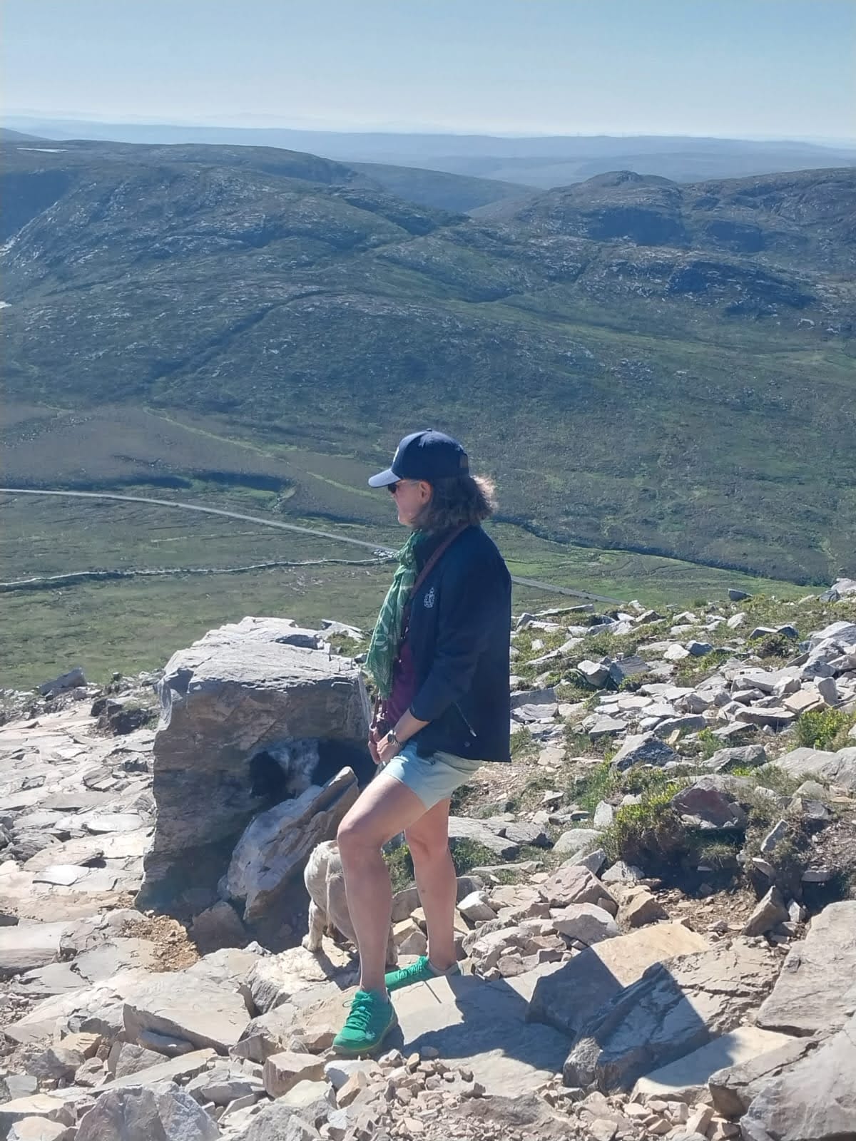 And here am I taking a breather. Paddy is hiding behind a rock in the shade, bless him, and Daphne is by my right foot. She did very well today, staying near Paddy.