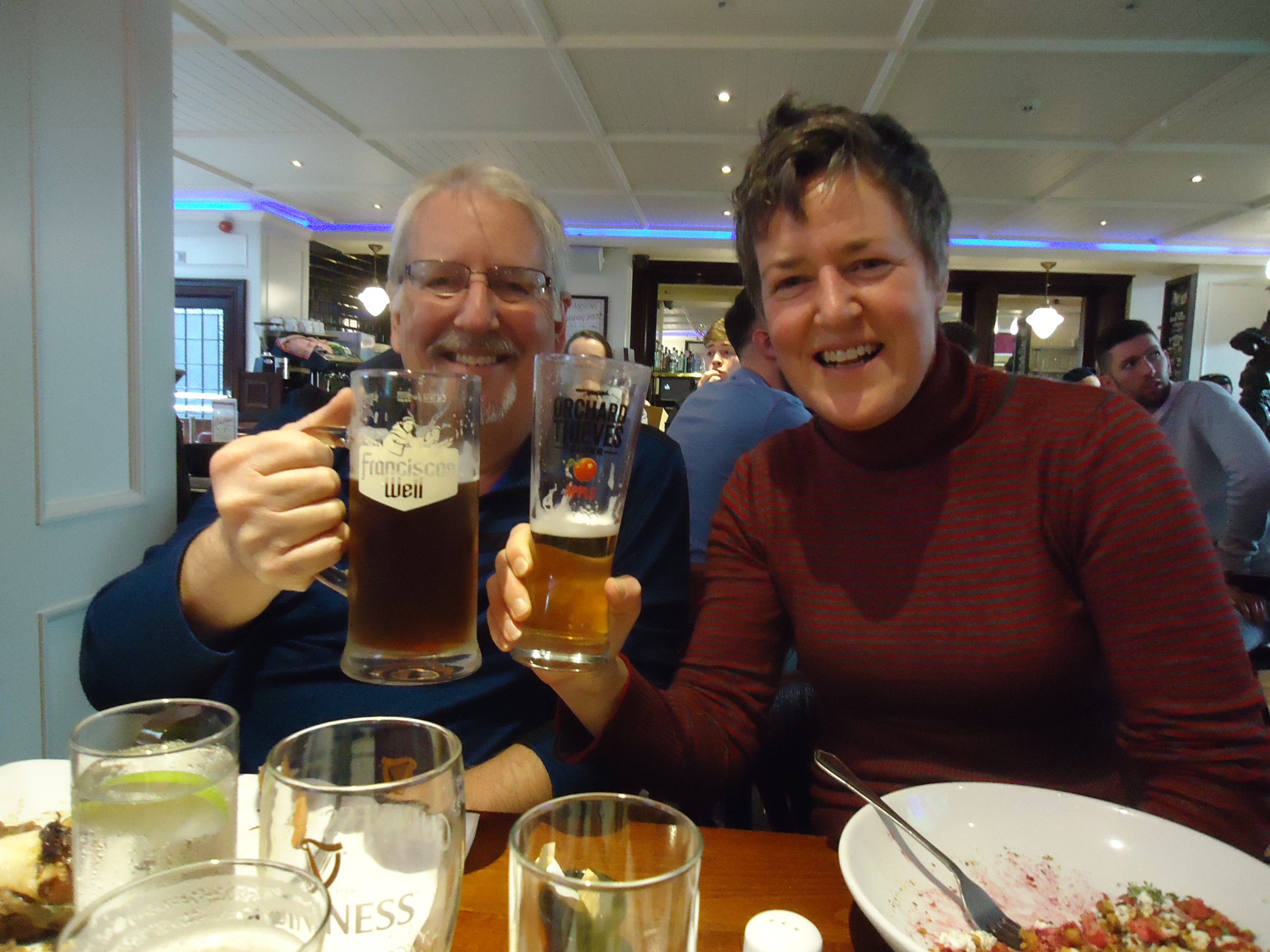 Here we are in the pub, where they tried a Wicklow Wolf, a Rebel Red (made at a former Franciscan monastery) and, of course, a Guinness: