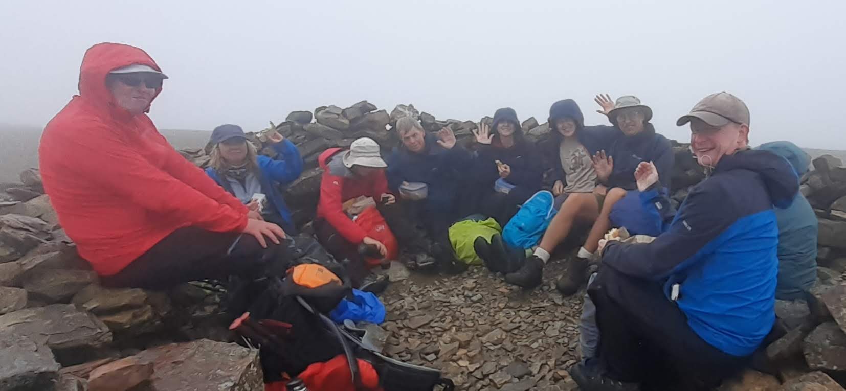 Here we are huddled at the top of Grasmoor in a rockwall horseshoe that offered some shelter.