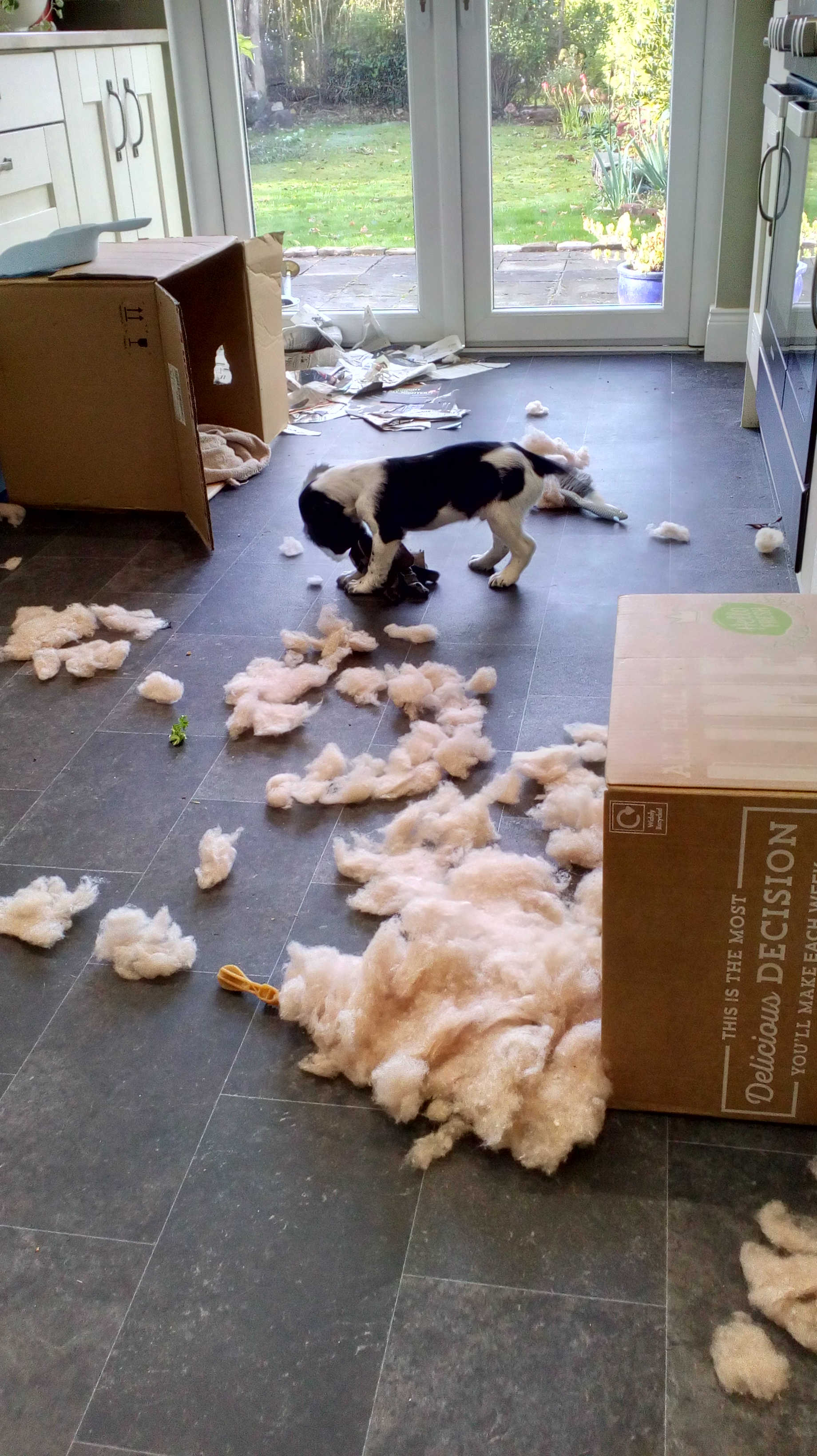 Today was mostly chasing after a puppy and a cat--letting them in and out of different doors. I take Paddy out A LOT to encourage outdoor peeing and pooing. I let Isabelle in and out of various rooms to keep her away from my needle-toothed buddy. She’s hissed at him a few times but I’m sure she’ll come round.