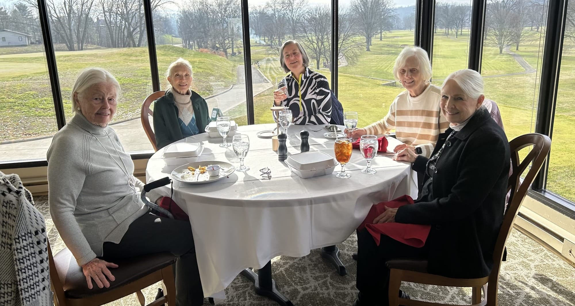 Two weeks in the US with mom flew by. There were medical appointments, lunch at the country club (below with our host, Sandy, second from right), lots of cleaning and cooking, having neighbours over (I made pumpkin-chocolate cheesecake), visiting neighbours to deliver presents, and two entertainment outings. We got the car, the heating and air conditioning and the recliner lift chair serviced. And I took down Christmas decorations.