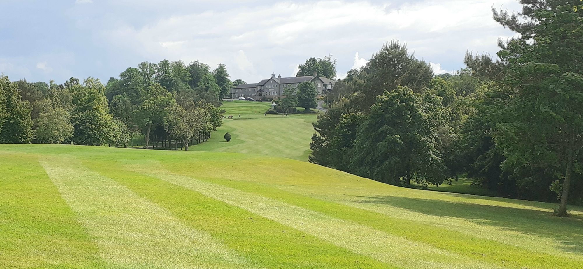 Friday I played golf at a course near Moira called Edenmore. It's a very long course with open fairways (good) and slopey greens (bad). Above all, it was beautifull, surrounded by farms. My course is a city course, surrounded by housing, so a different vibe. The club house has a deck on three sides with beautiful views. It was once a military hospital.