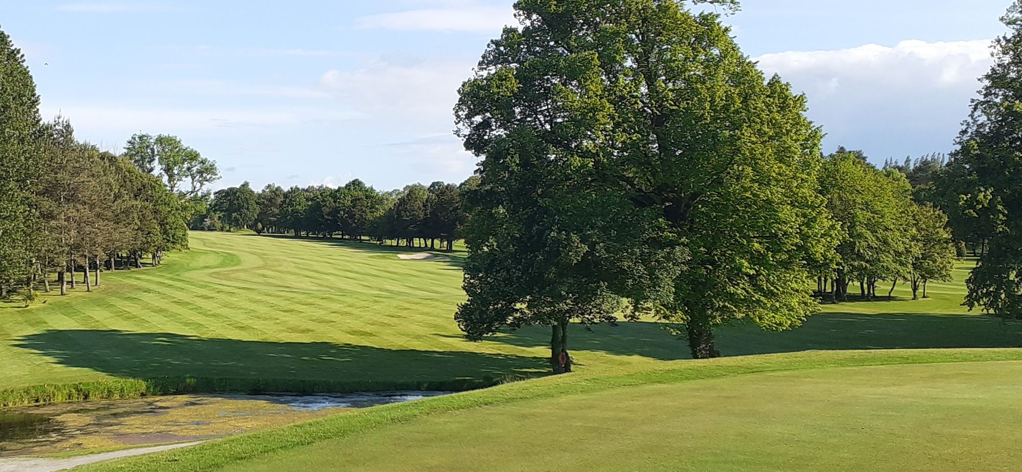 The little tree by itself on the left of the fairway denotes 150 yards to the pin. Every hole has one. Most courses have a plaque in the ground that is hard to find.