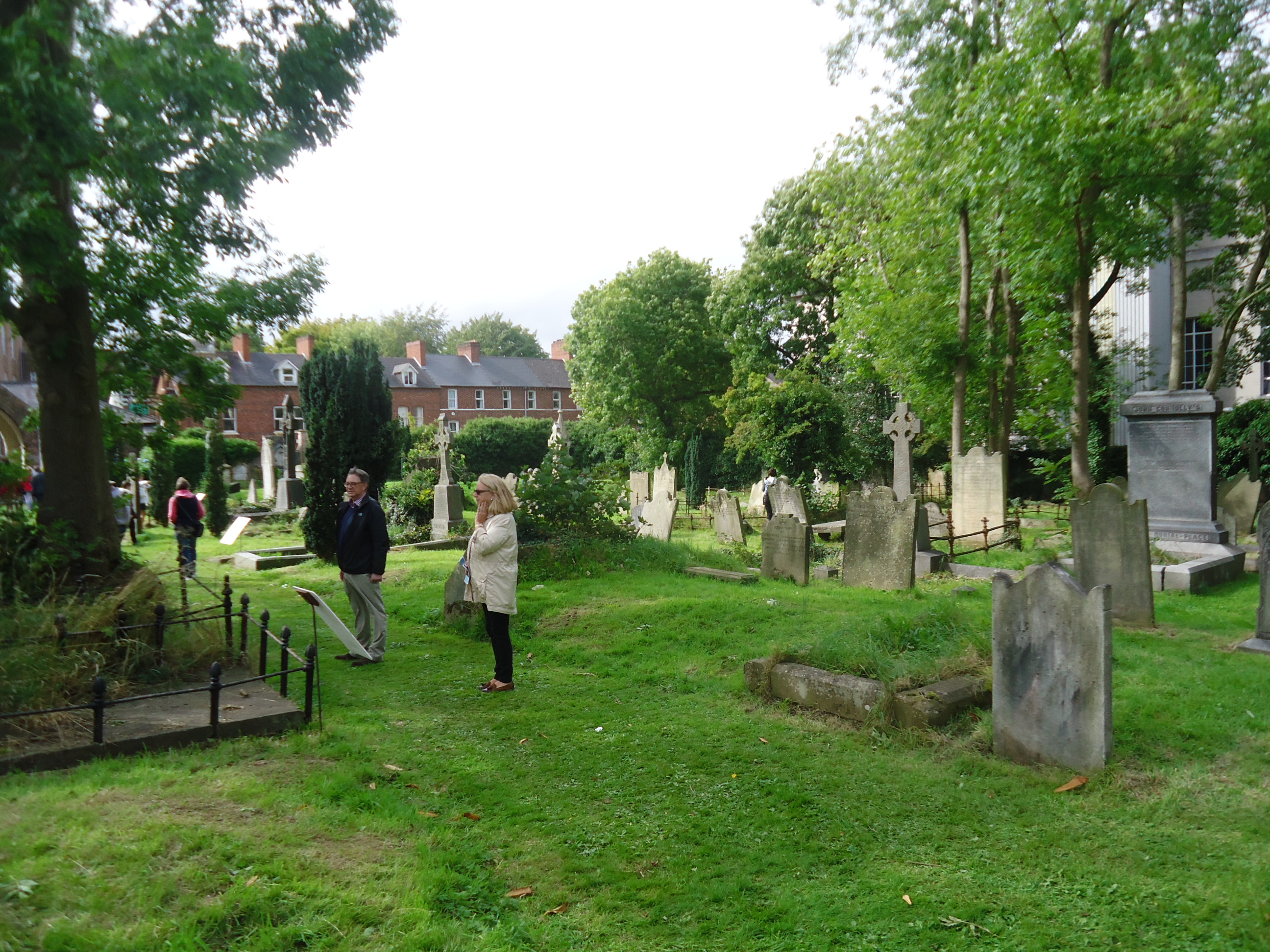 On Sunday we started at Campbell College, as chronicled. Then I went to church, then we toured Friar’s Bush graveyard, a site of Christian worship going back to medieval times. A church stood on the site in the 1500s. Supposedly Catholics worshipped there under a thorn tree during the 1700s, when Catholics were not allowed to practice their religion, own land, or hold public office under the penal laws. Supposedly their priest was shot by Cromwell’s forces and buried under the thorn tree, thus Friar’s Bush.