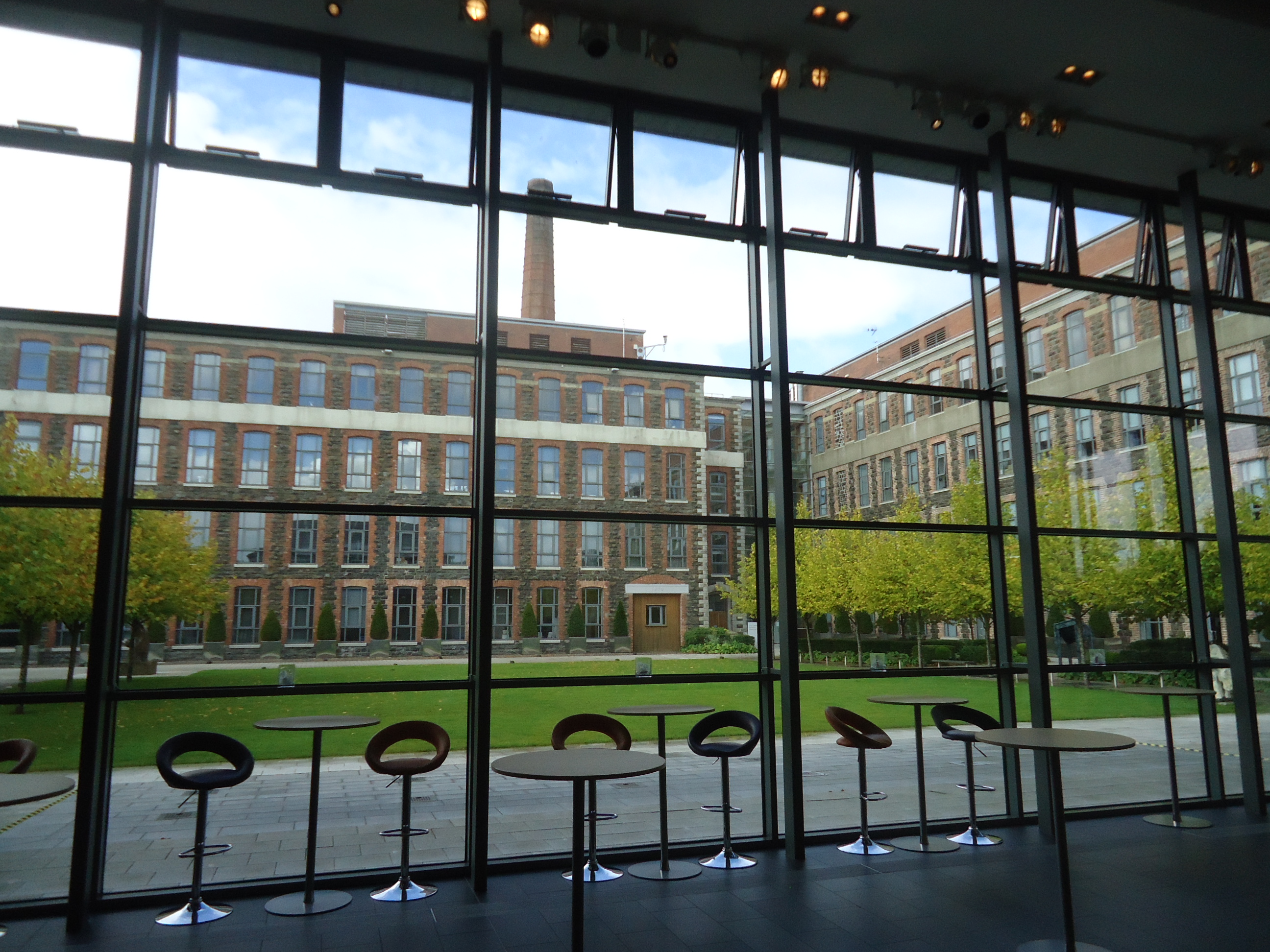 Then to another house that was nothing but conference rooms, a bit of a mess. Then on to an old mill which has been converted into borough council offices, a museum, and a theatre. The view from the cafe: