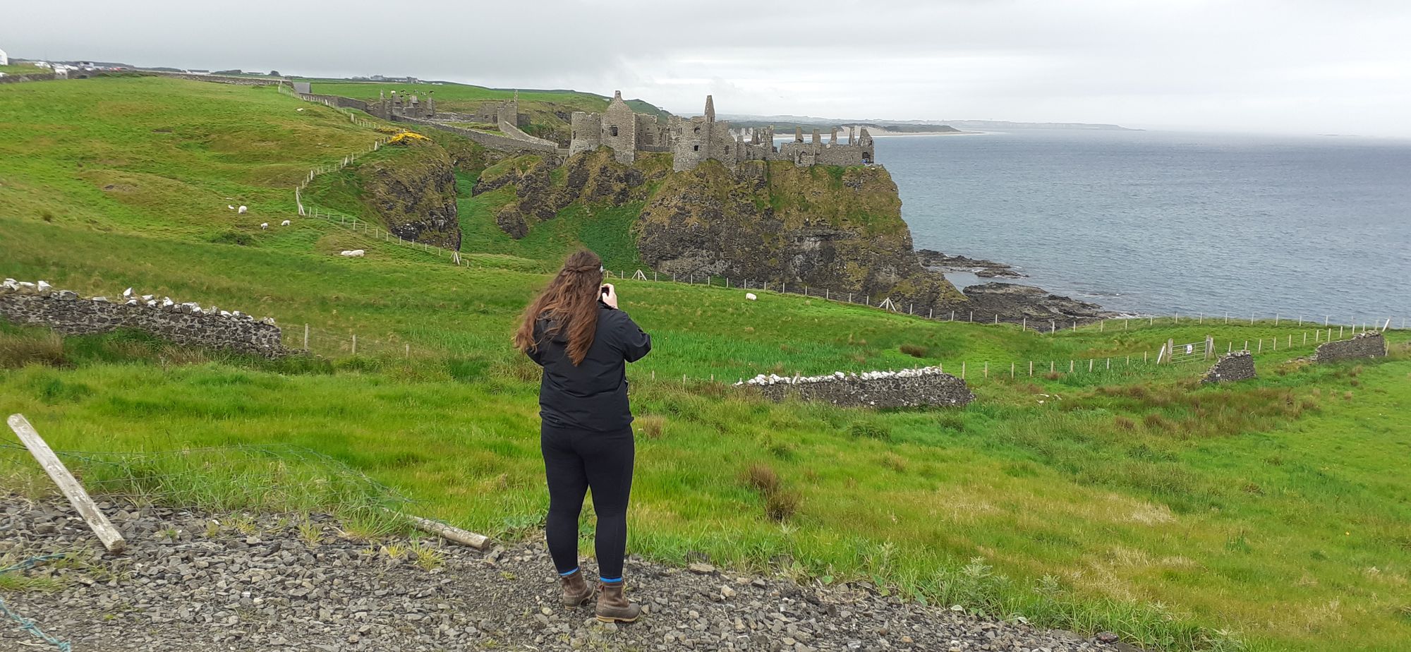 From there we went to Dunluce, which she really enjoyed. Paddy and I stayed in the car as I've seen Dunluce before but Emma spent a lot of time exploring the ruin with a map showing how each room was used.