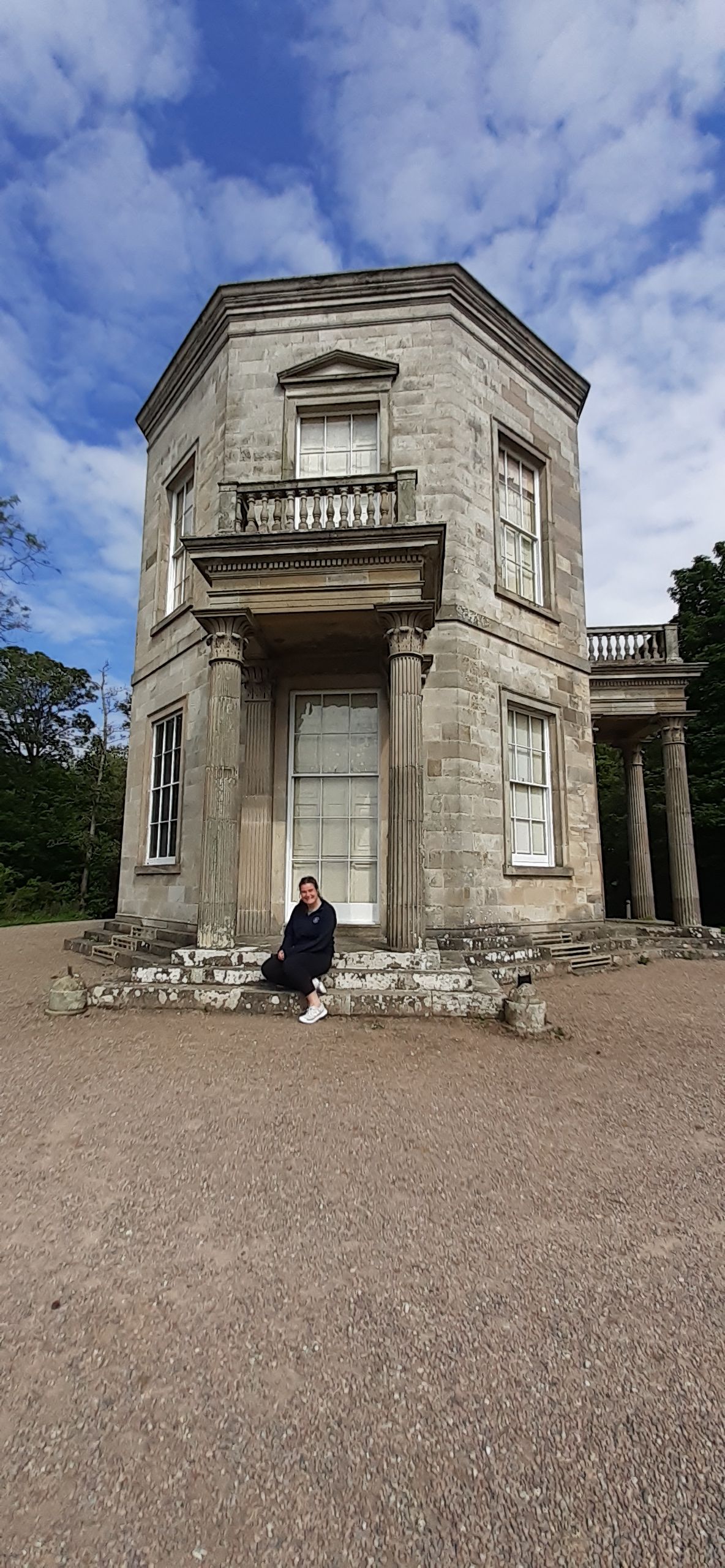 Saturday she wanted to see Mussendun Temple and House. So that's where we started. Looking at my photos, I realise I took the best photos on her phone, including one of her next to the temple. Here she is barely visible in the dovecot.