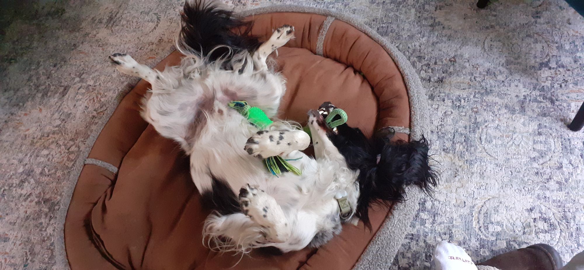While I'm on the topic of my favourite k9, here is a puppy pic of him taking up one corner of his dog bed.