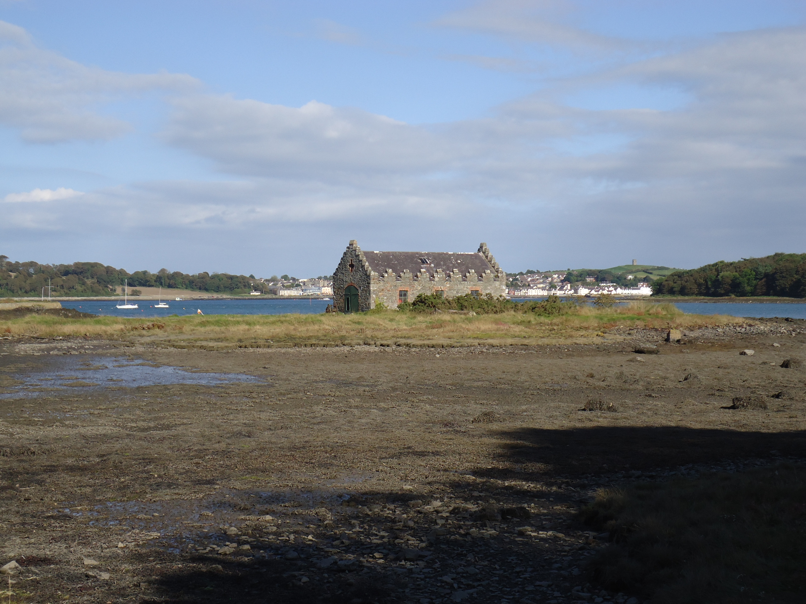 On the way back to Crawfordsburn, we took a sidetrip to Nendrum Monastery. It dates to the 5th Century and had a mill, built in 619 A.D., that was powered by the tides in and out of Strangford Lough. I find that absolutely amazing. Here's the tower, whose purpose was to ring a bell for timekeeping (i.e. worship) and to secure valuables.