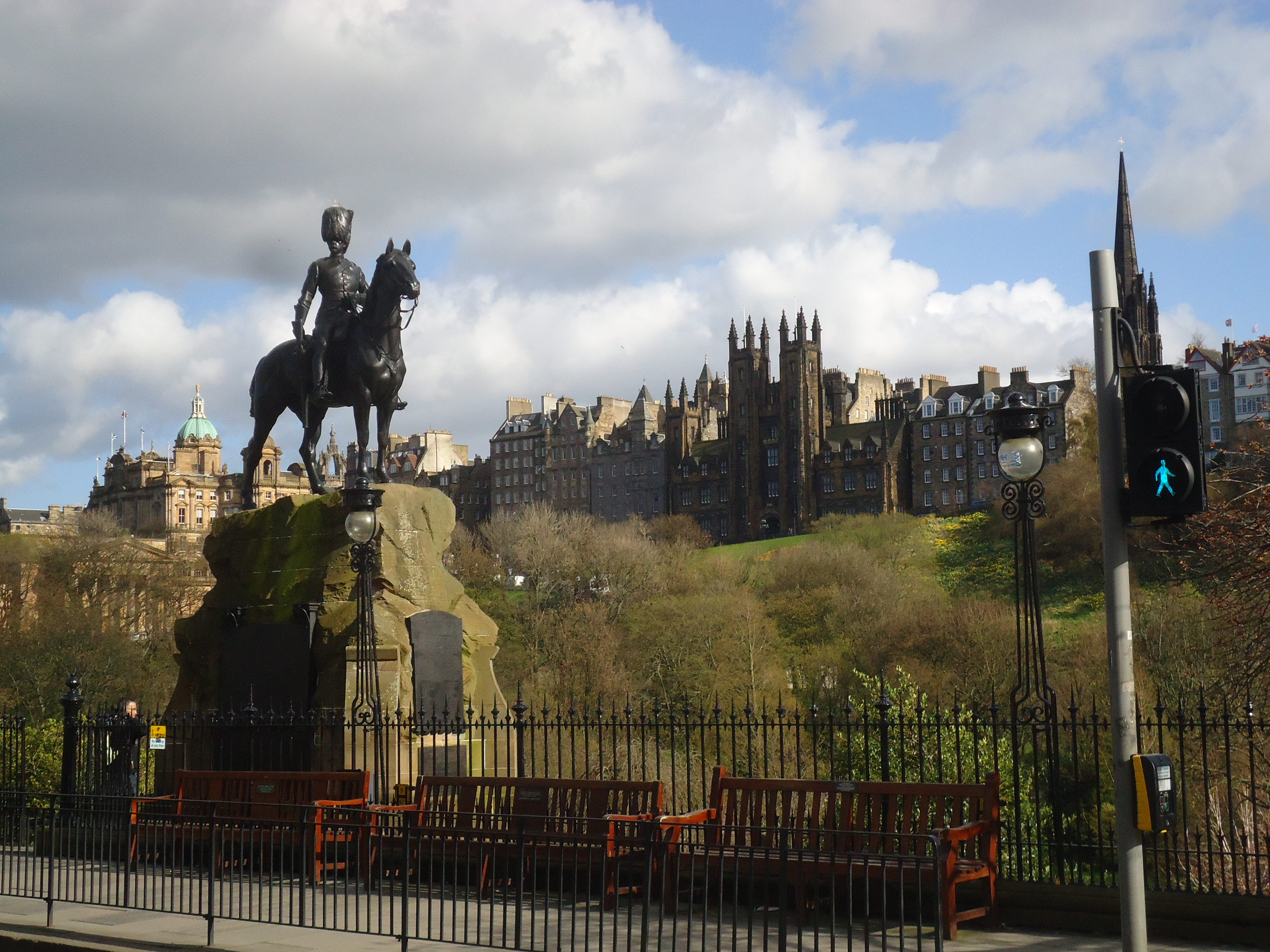The view above was to my left and to my right was Edinburgh Castle. It was a sunny day, but the angle of the sun left the castle in shadow.