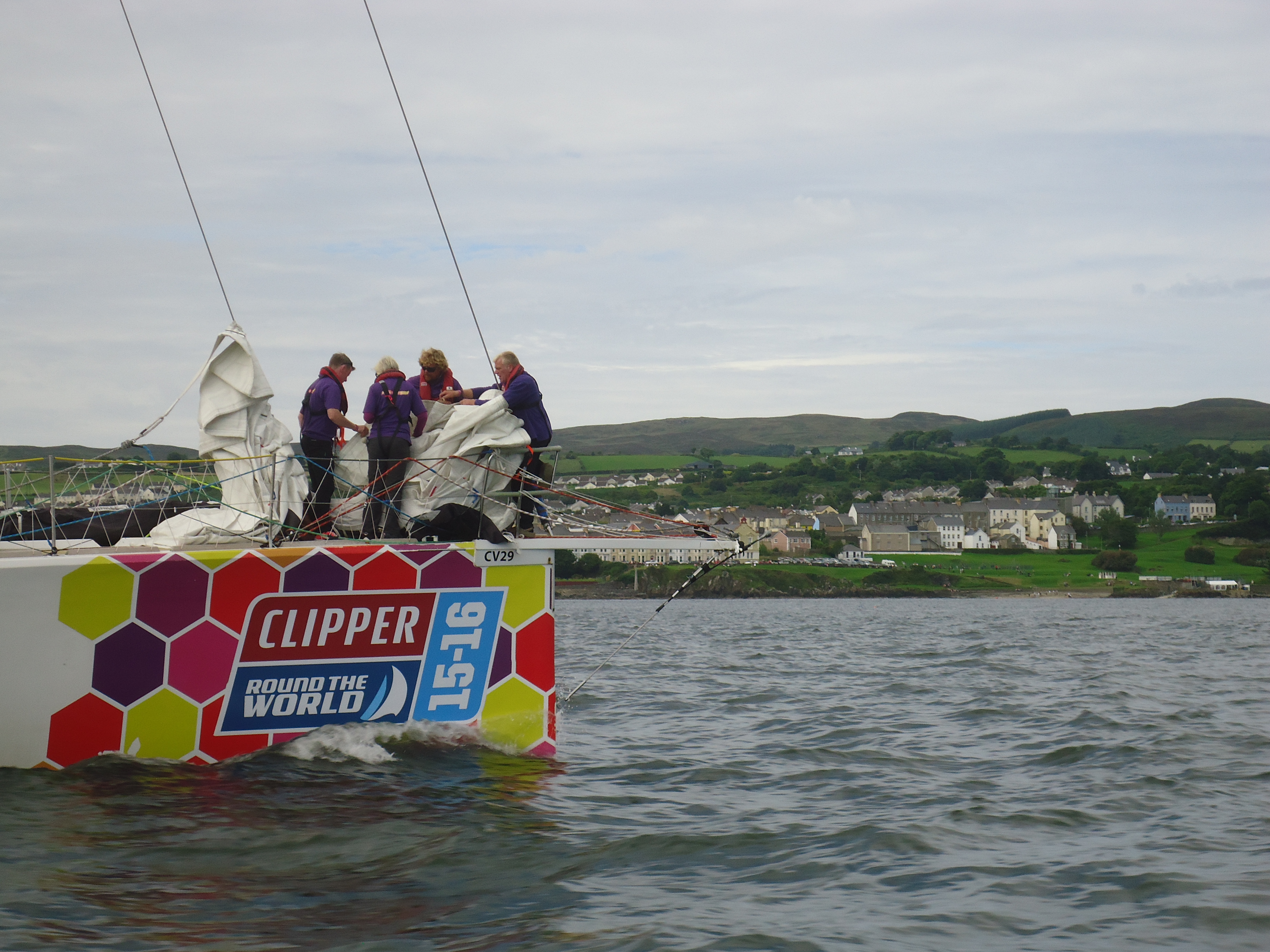 The people on this boat paid 5,000 pounds for the pleasure of raising and lowering sails and being in close quarters with a dozen people all the way to Holland, the next stop on the clipper race.