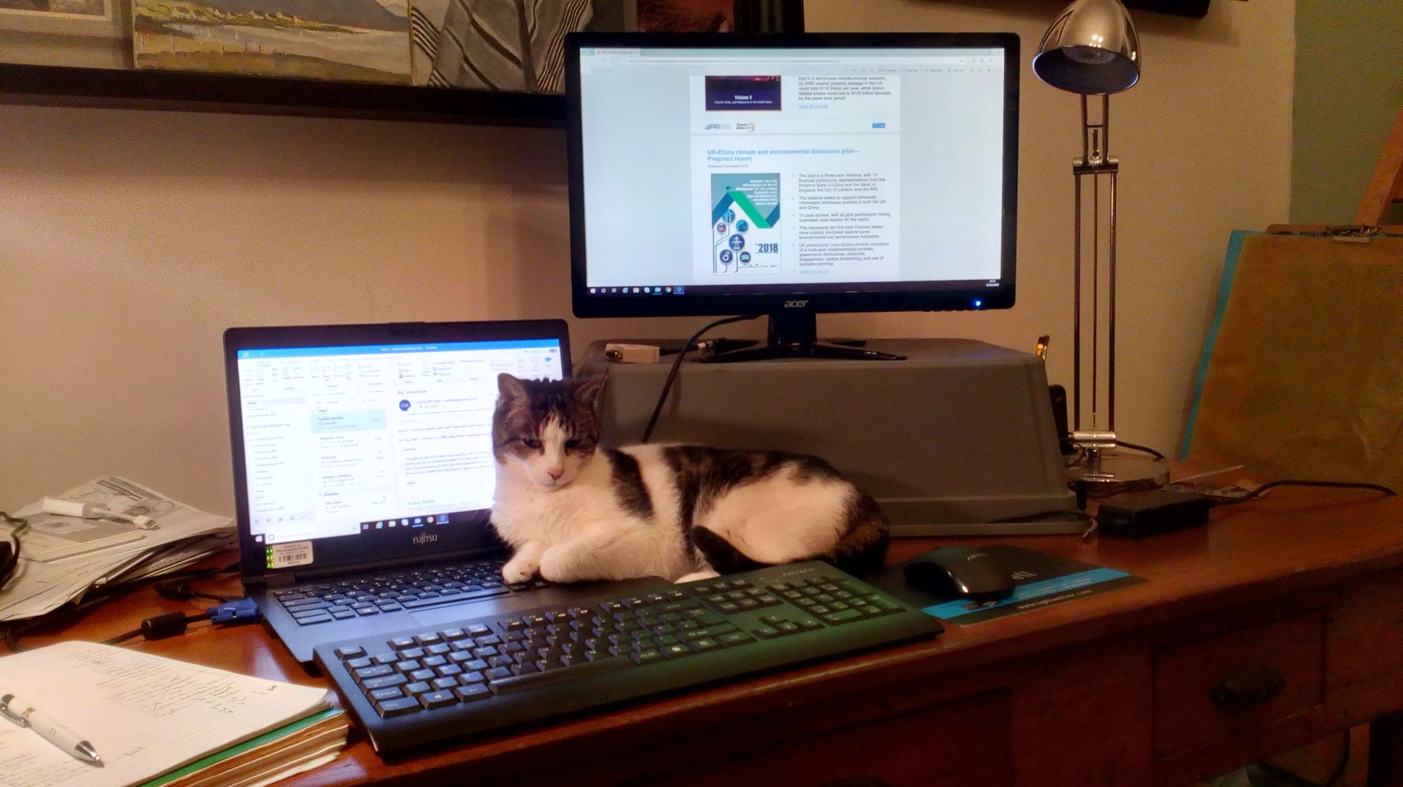 Note that the monitor sits on the bottom half of a cat kennel. You would have thought that would have scared Isabelle away.