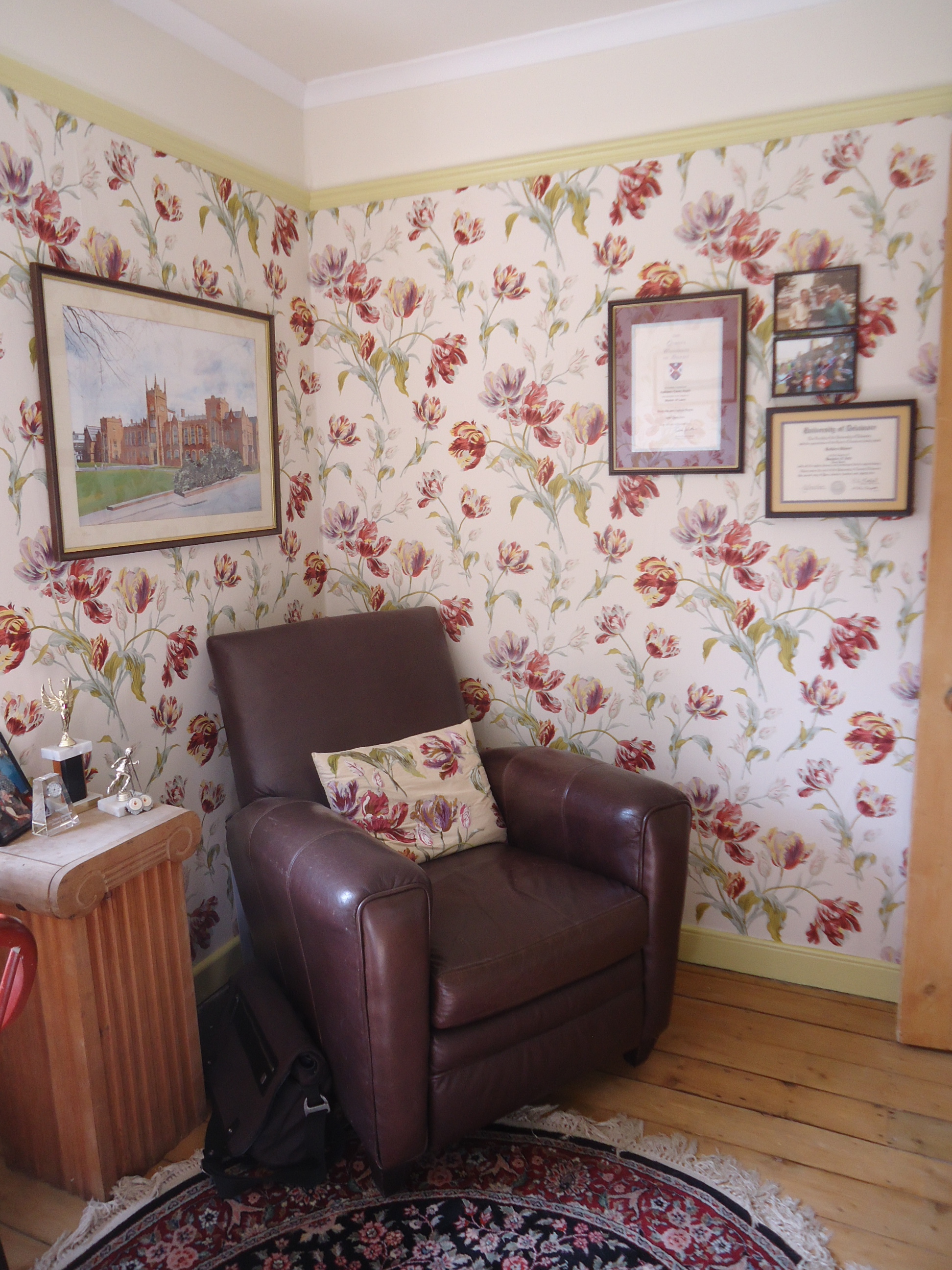 Good news is, I love my little office. David made a pass at redecorating the office a year and a half ago. Here’s how David rolls: