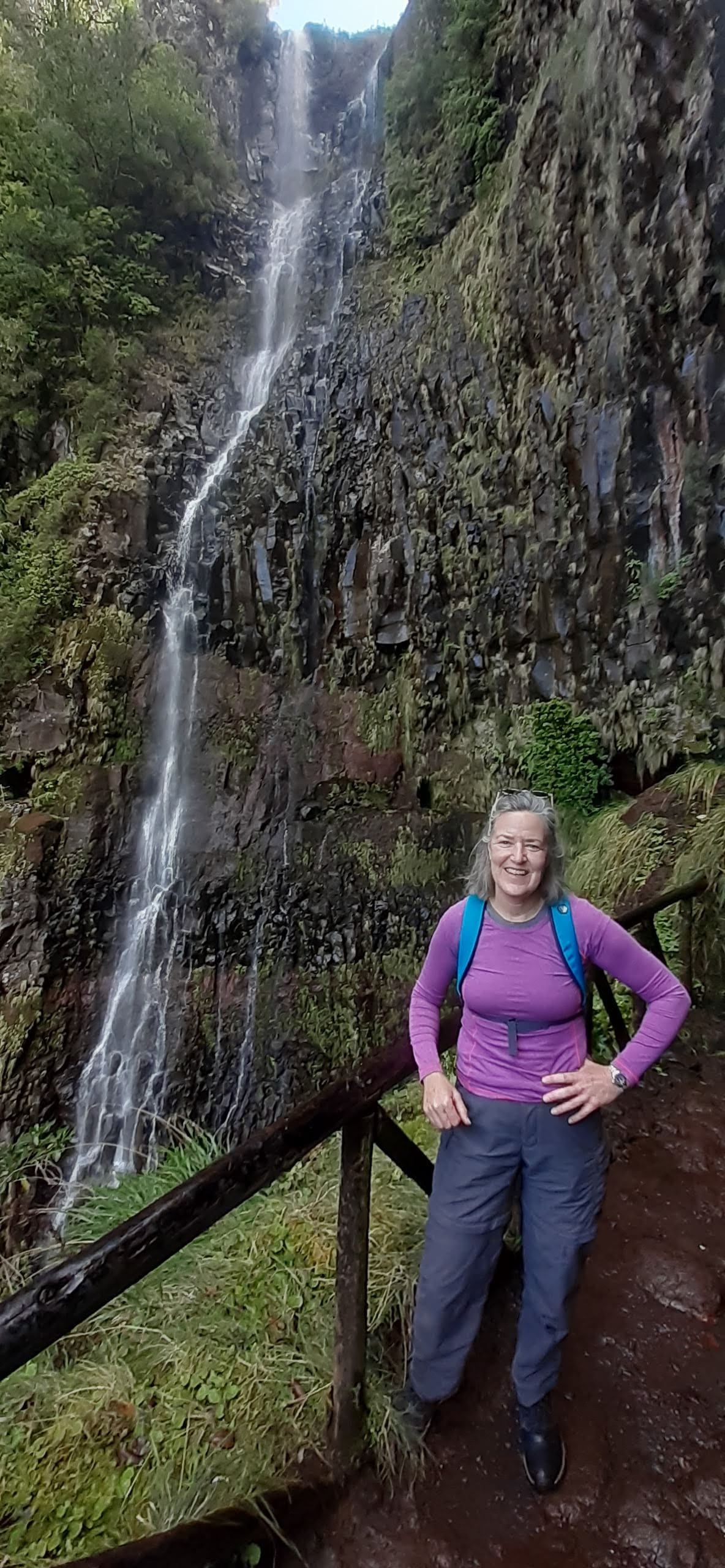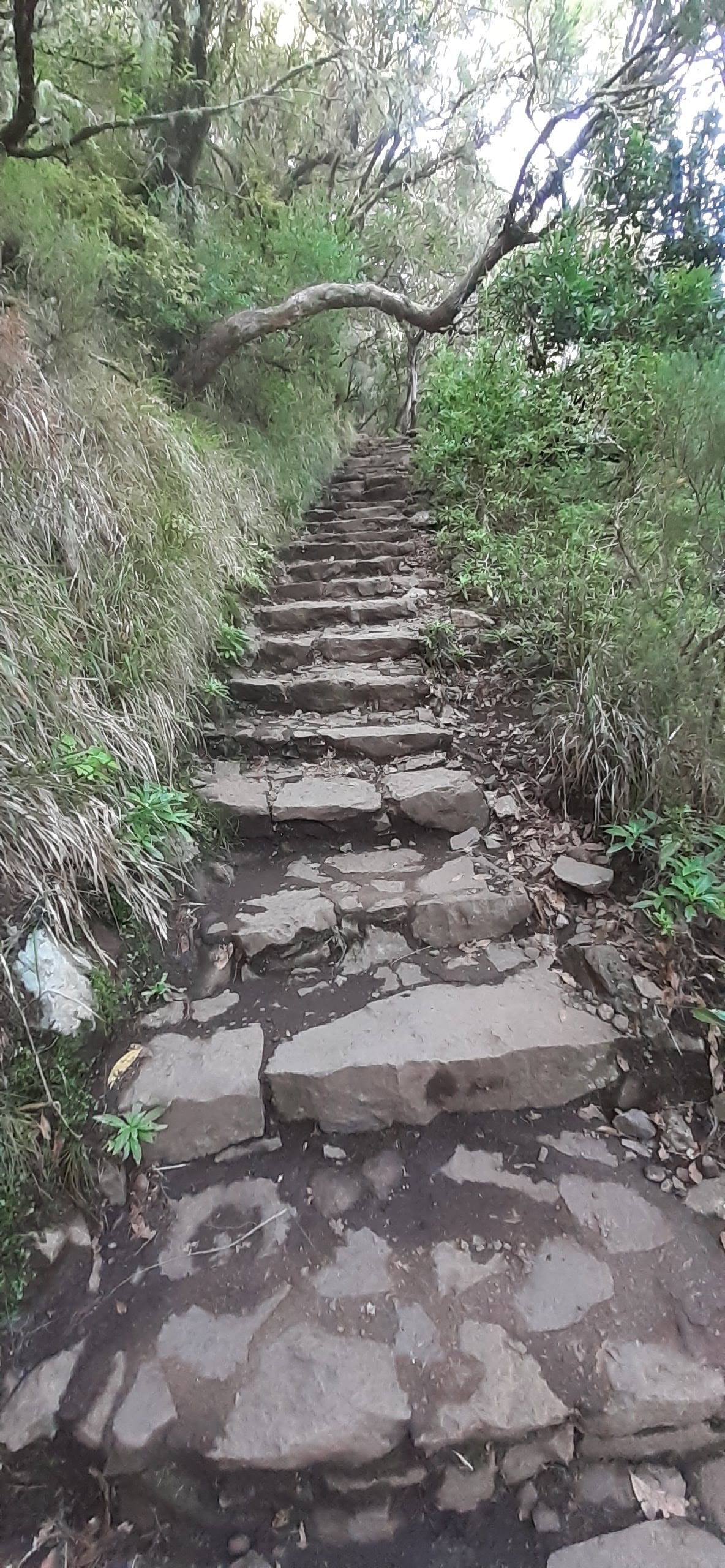 The first steps, above, were to descend from one levada to another. The second pair of steps was to facilitate a one-way path to our second waterfall – the one-way path gets you to the waterfall, then on the return trip you go up the steps, through some woods, and down the steps to rejoin the main path. Yet some naughty people came back from the waterfall on the one-way path. We very politely flattened ourselves to let them by while judging them savagely LOL. They were all young fashionably dressed people, no doubt on their way to the next Instagram photo.