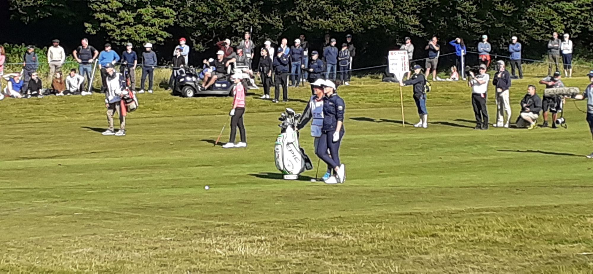 It was a really fun day, and interesting to watch the women golfers. It was an interesting format on the final day--3 women, then 3 men, then 3 women, all day. Same purse for both genders. We watched the last group, a Thai woman, Pajaree Anannarukarn, and two Americans: Jennifer Kupcho, and Emma Talley.