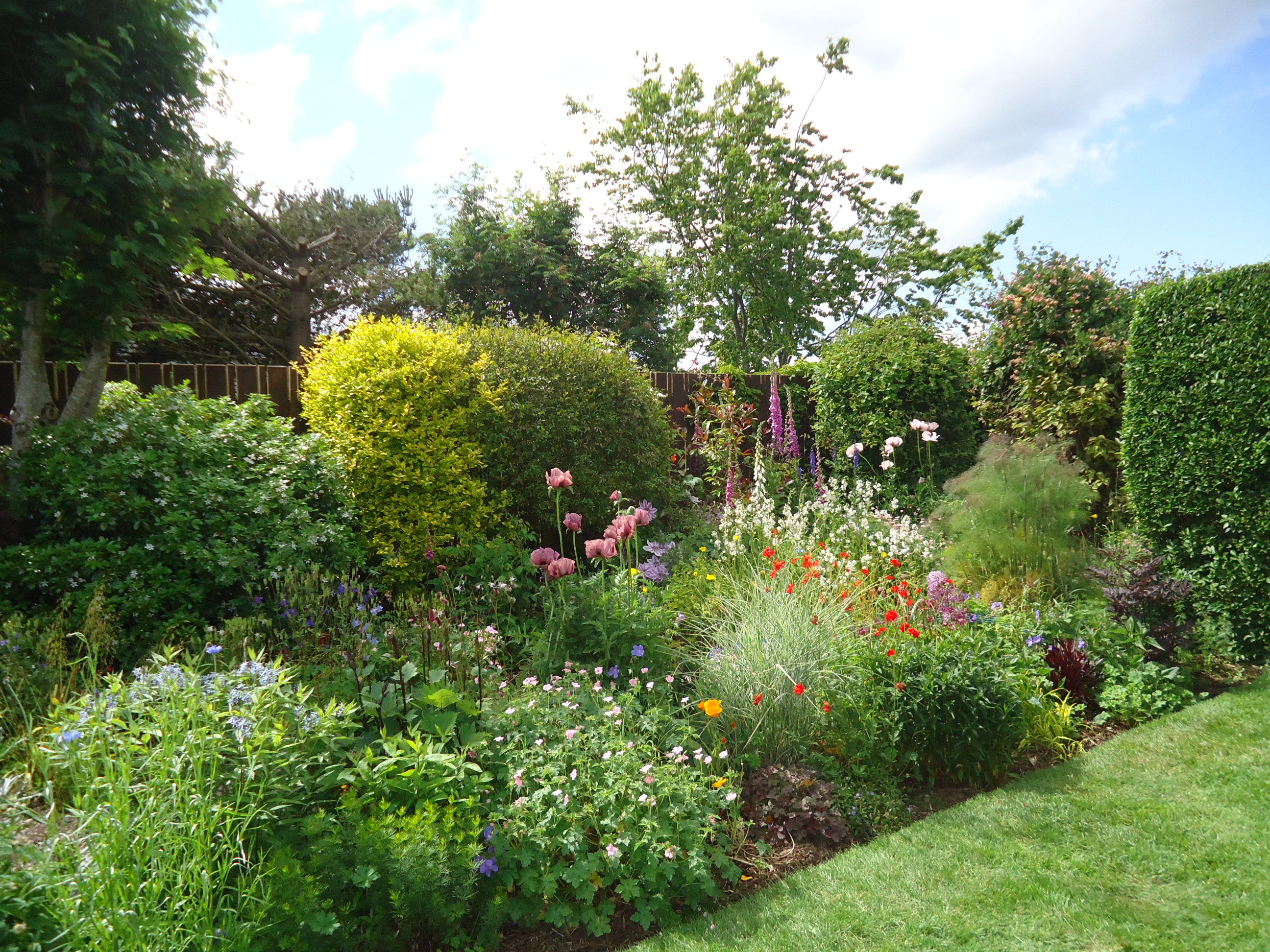 Tonight we had Marshall over for dessert. David made rhubarb crumble and custard so we had that and a bit of cake. Beautiful gardens, multiple cakes and treats--my kind of day.