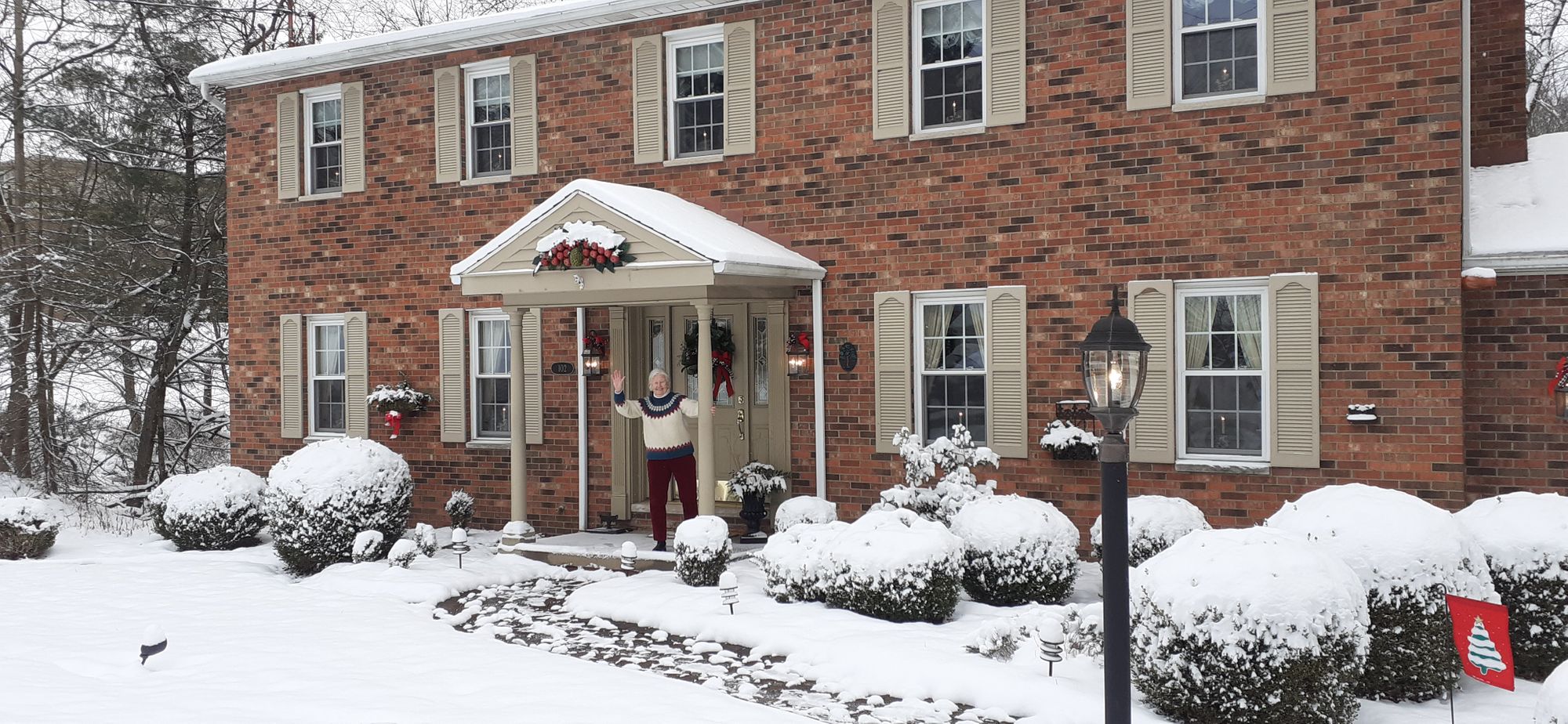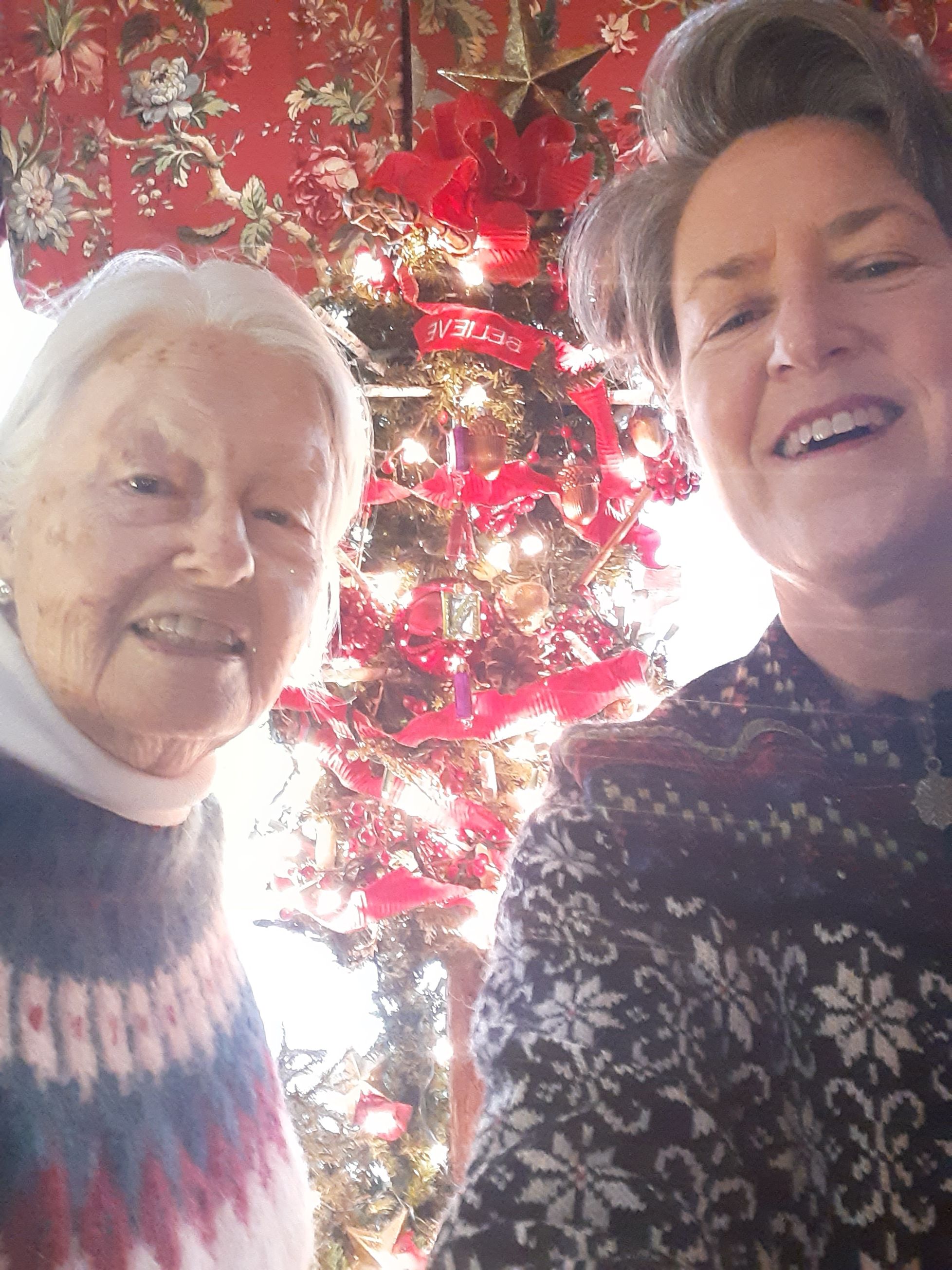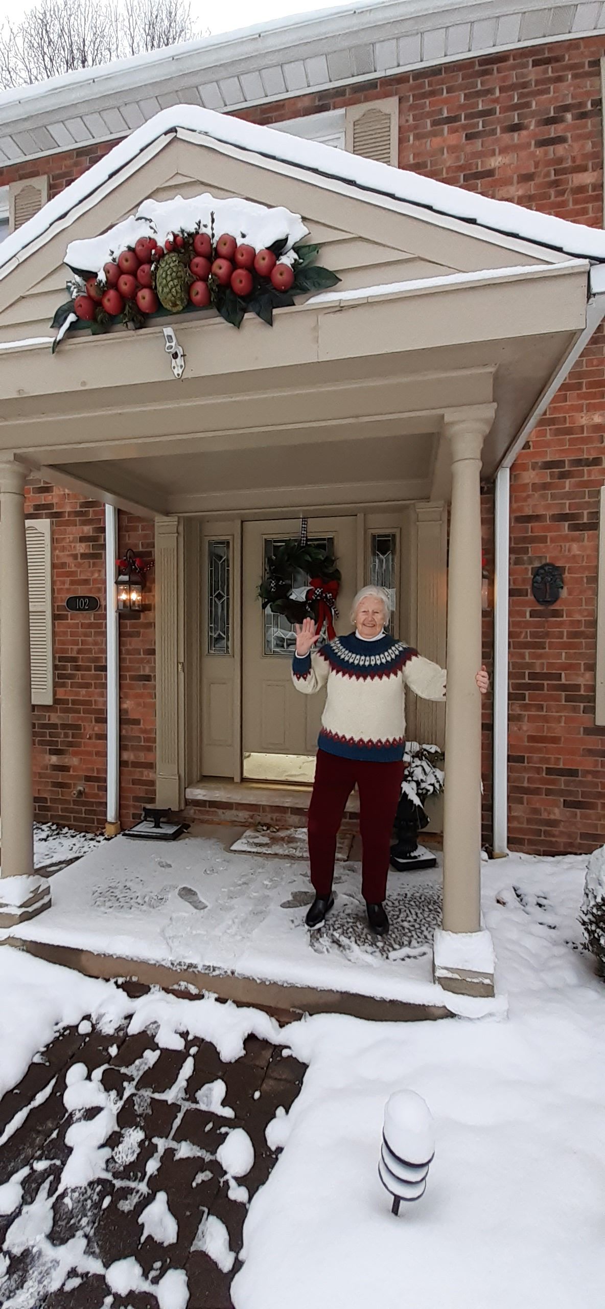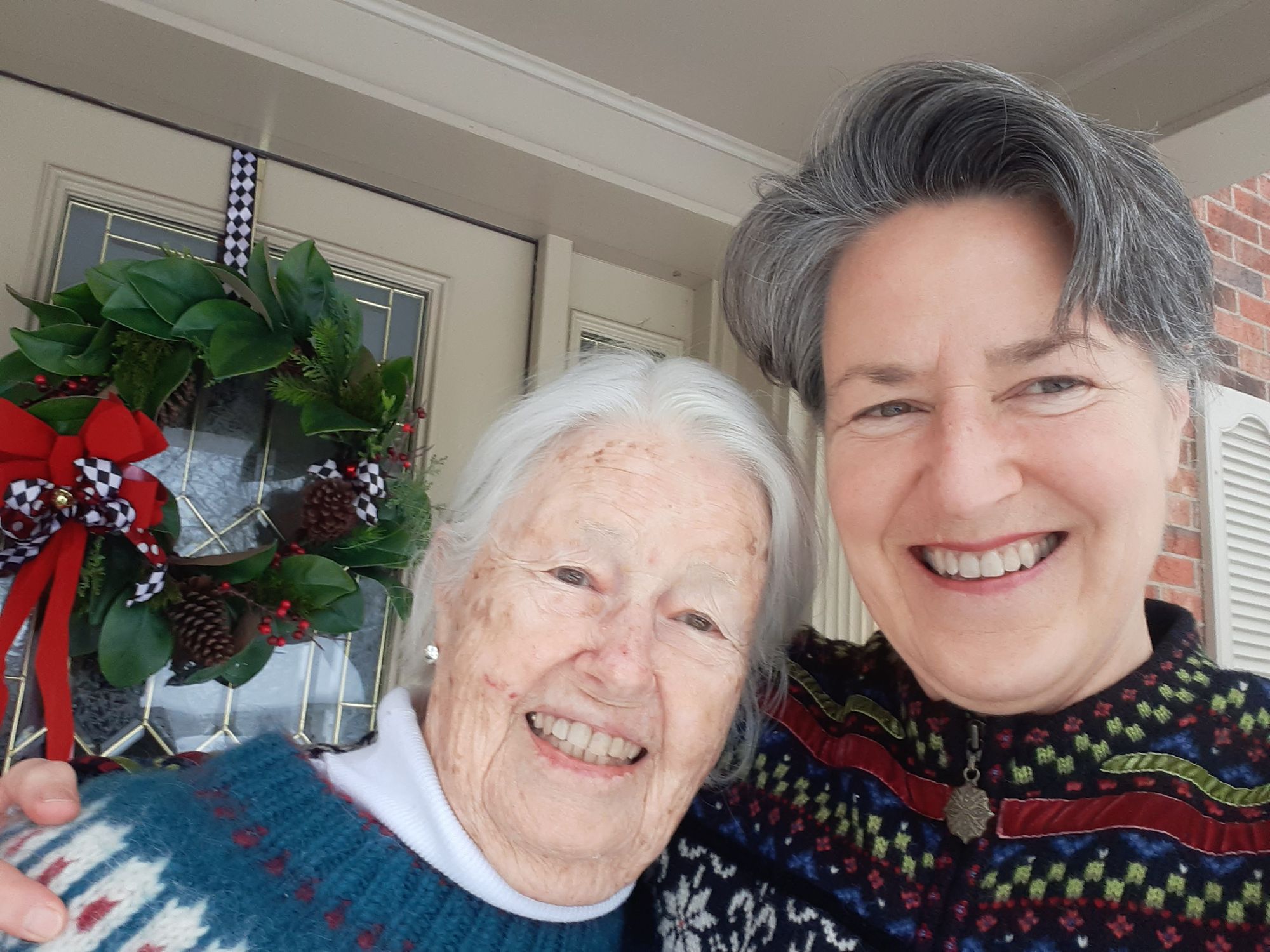 But two weeks went by in the states without me getting sick. So mom and I let the mask slip, so to speak, and began eating in the same room. (I'm writing on Jan. 1 and we're still fine). Here's mom in front of her house--always lovely at Christmas.