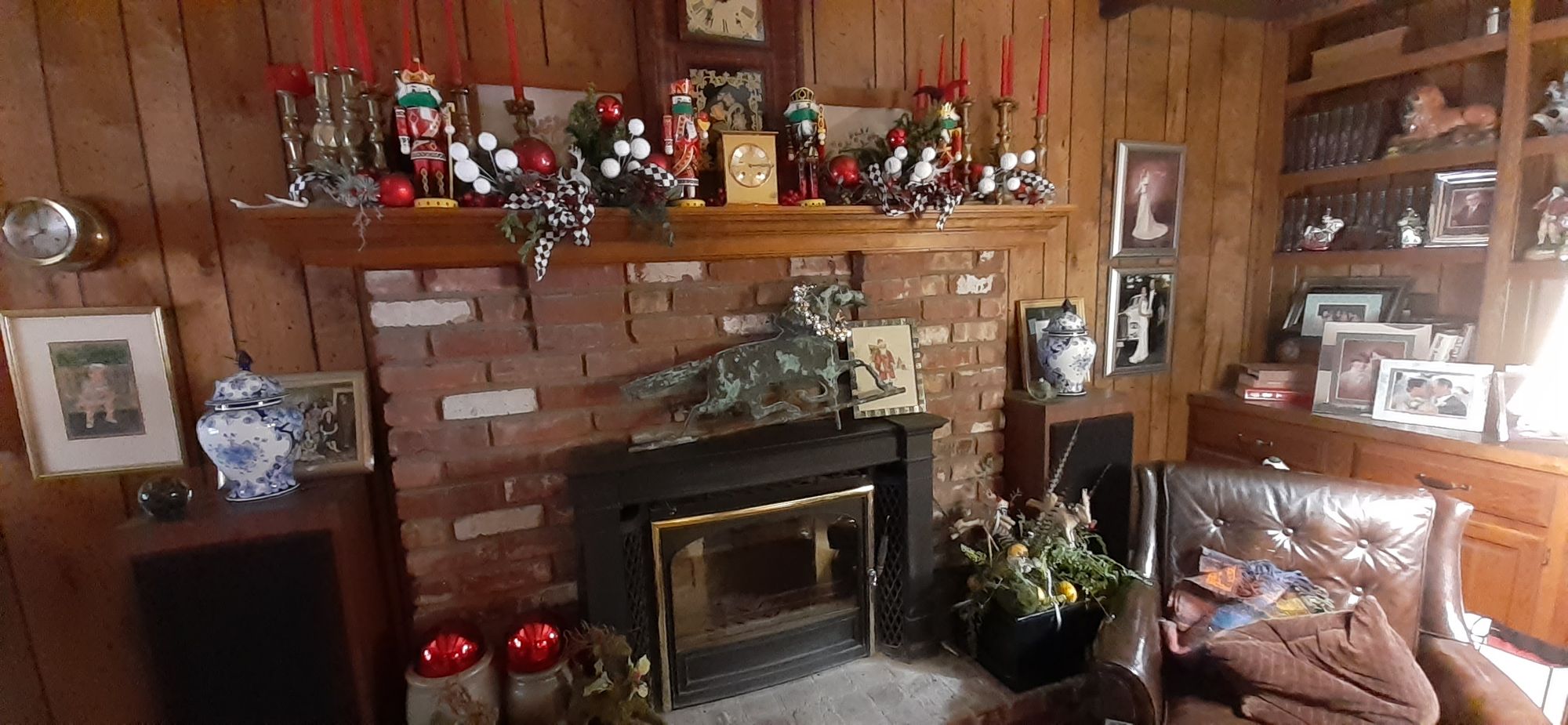 In case it isn't clear, mom loves Christmas. Here's her mantle, complete with nutcrackers wearing green masks.