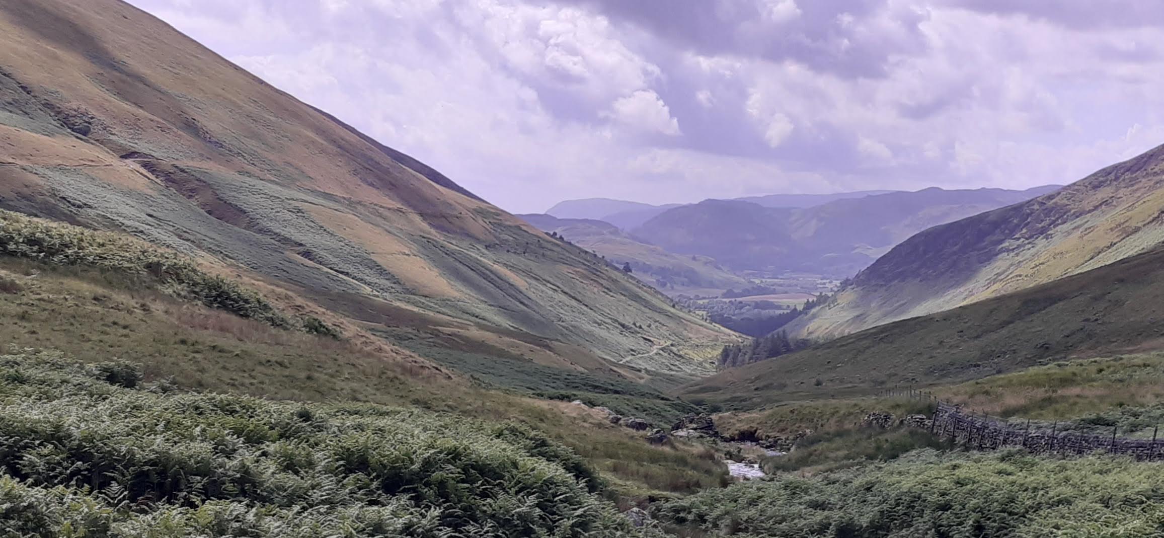 I should say the Lake District is notorious for constant rain. This is my second day of beautiful weather. Below we are descending to Keswick. From there another 1.5 miles to the house. I'm never a happy bunny on the final miles as my legs are dead and various parts of me hurt. But a small price to pay for access to the beautiful fells.