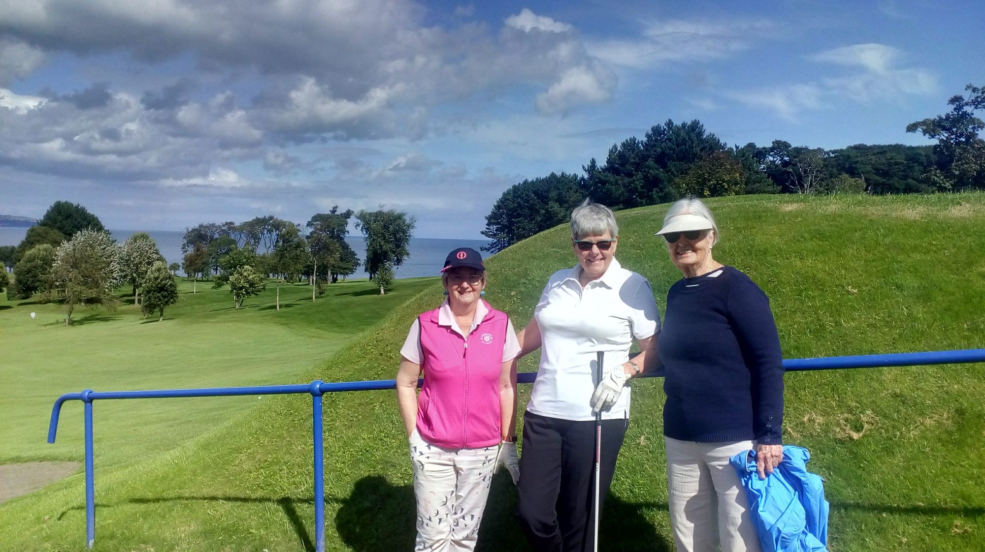 We had a gorgeous day and the course itself was in beautiful condition. That's Belfast Lough in the background. Below is Marian, Eileen and mom just before we teed off.