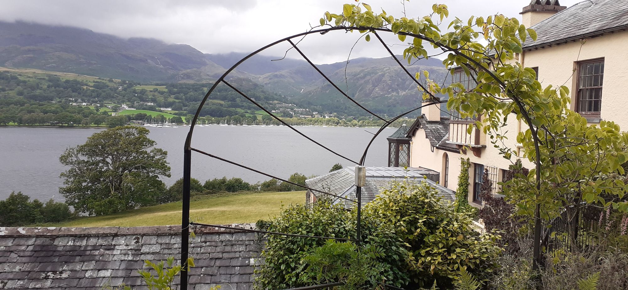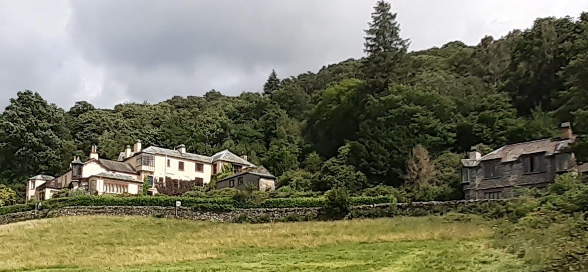 I spoke to a woman on the jetty whose daughter swam by as we spoke. She said her daughter had swum five miles!!!! She's training for an event on Lake Windermere. Here's a view of Ruskin's house from below.