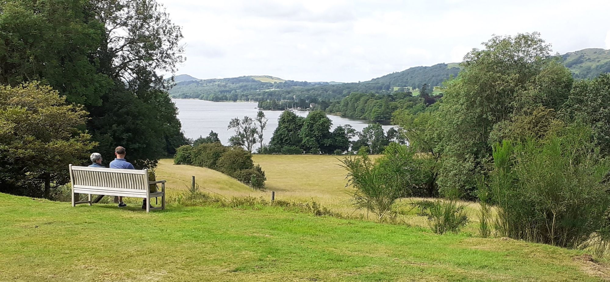 And here are Belgian Bart and his wife on a bench overlooking Coniston Water from the lawn of Monk Coniston. It looks like an ad for HF Holidays.