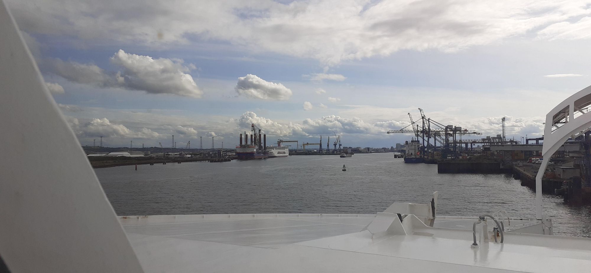 The four-hour drive back up to Cairnryan was uneventful. The ferry crossing also uneventful. I had a great seat at the very front (prow?) of the ferry coming into Belfast Port.