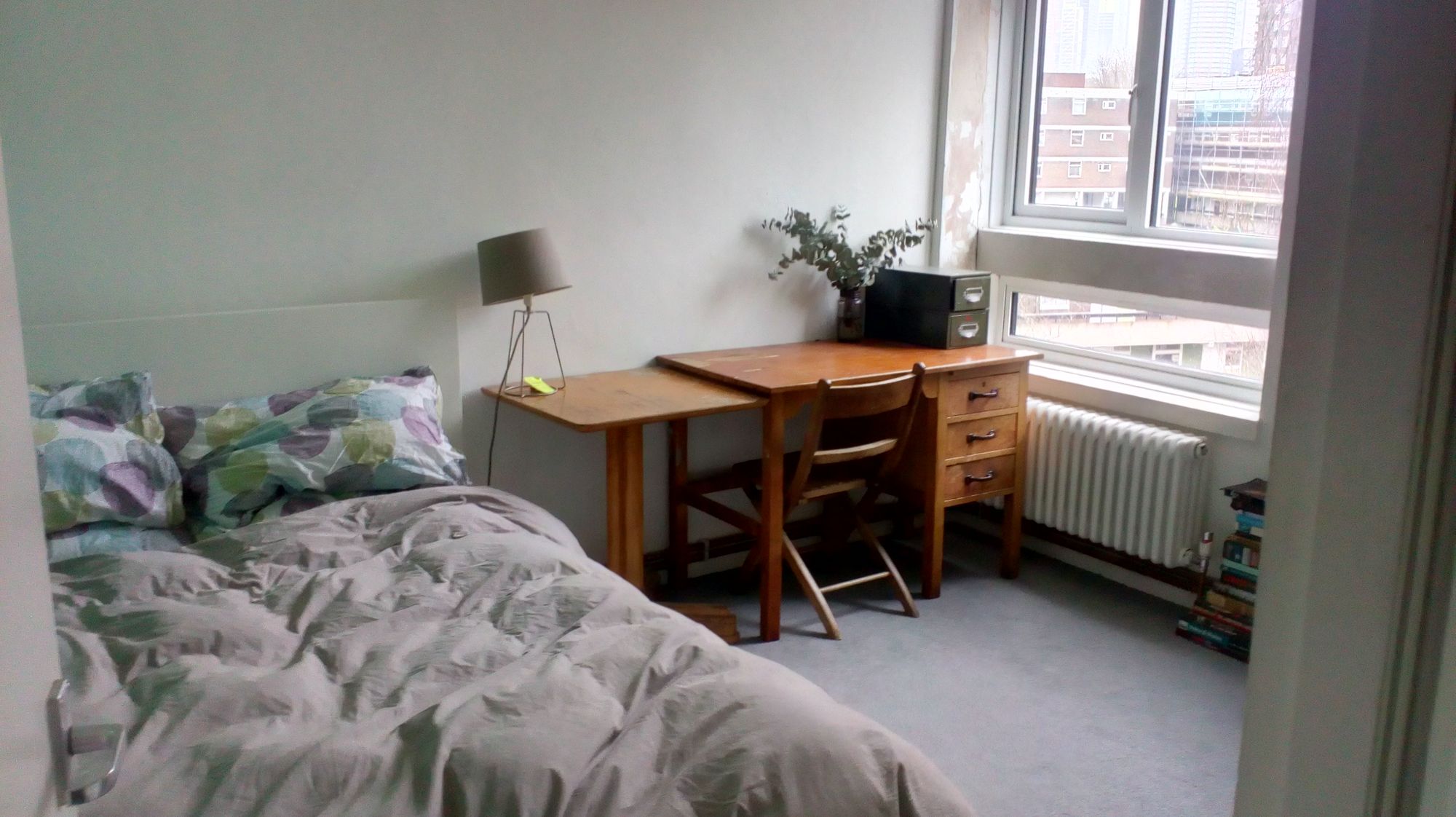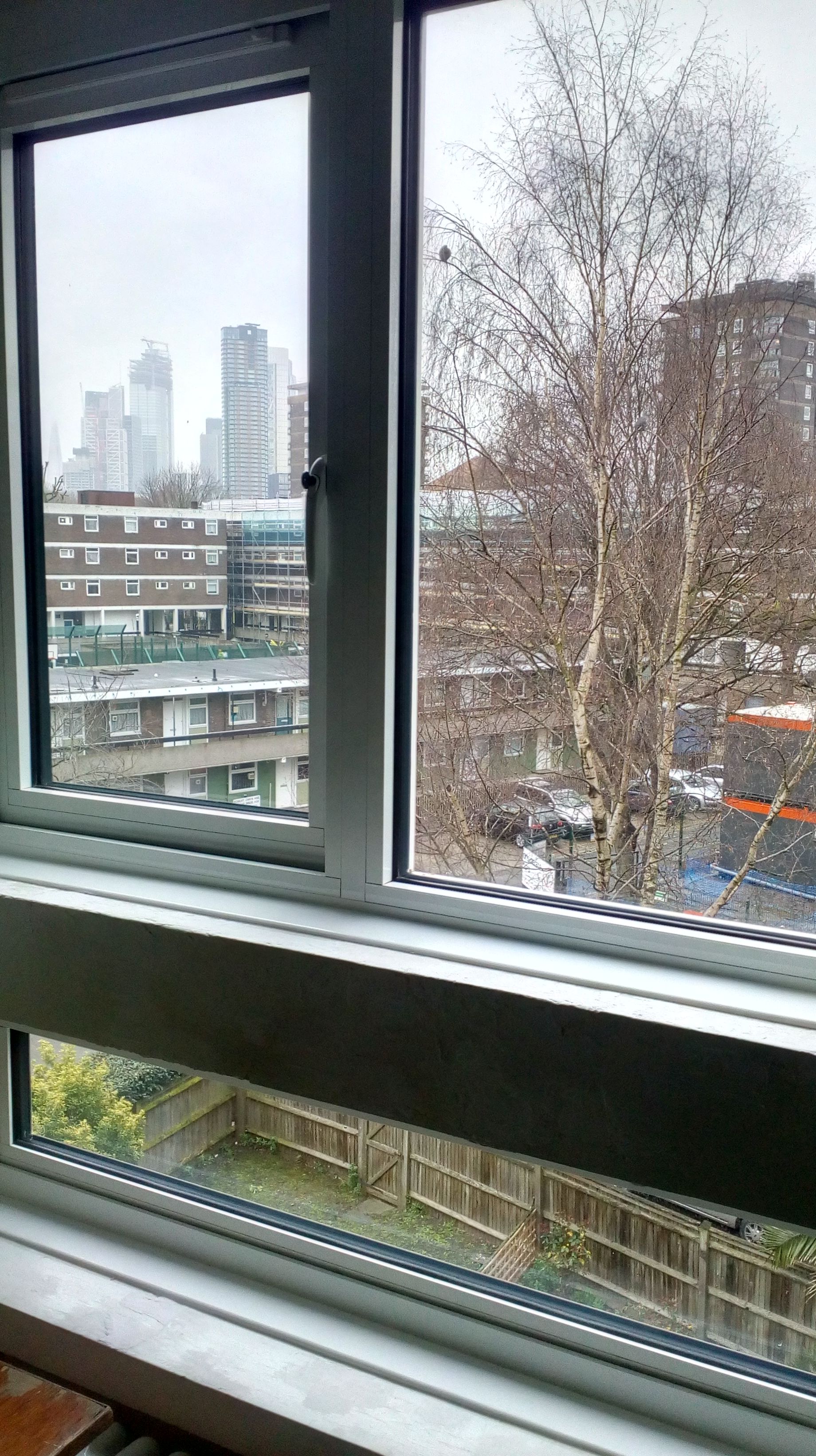Rachel has a two-story apartment in a four story apartment building. So a row of apartments on the ground floor and a row on the third floor. It is modest, but it is all I need. A 25-minute walk to the office and service on the District Line to the West End. My view: