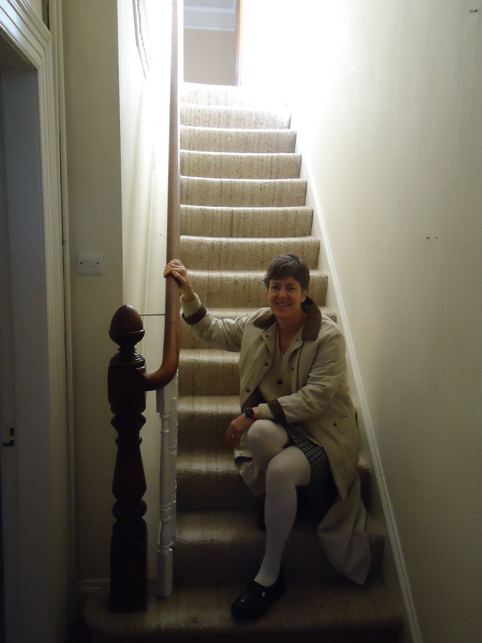 Me by the newell post. I wrote a post a long time ago about the importance of a good newell post and bannister. My last house had a crappy staircase so I'm overcompensating in this house. This looks like a stairway to heaven, doesn't it?
