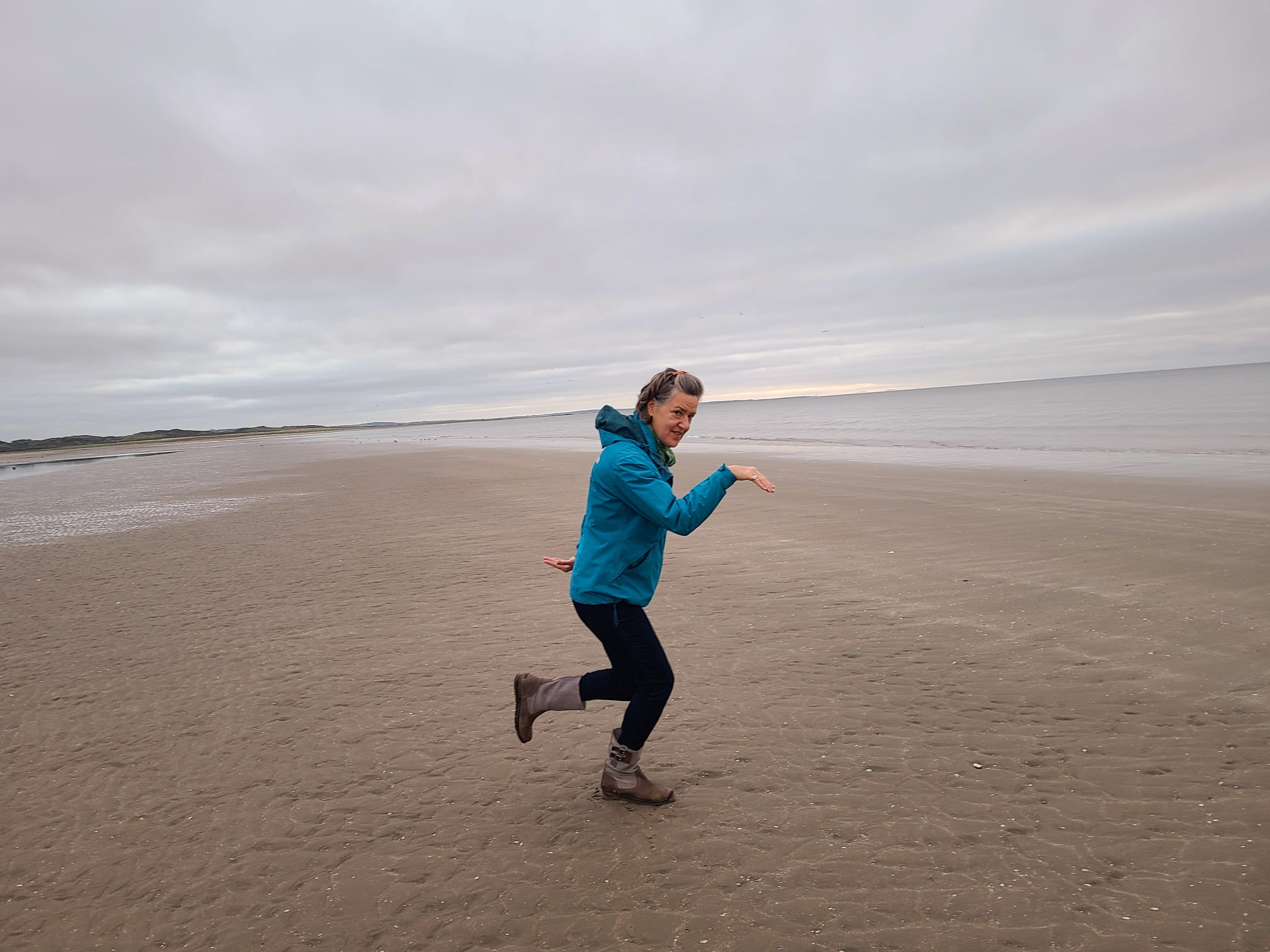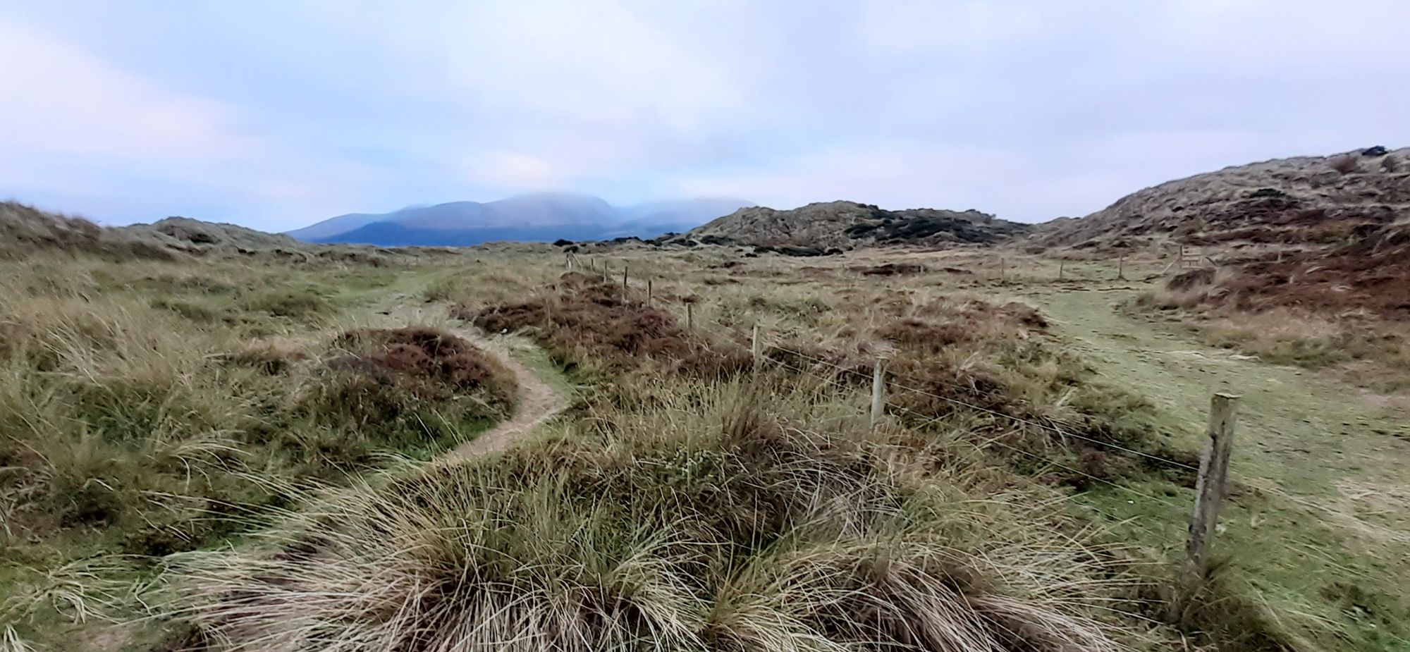 Strike a pose. I didn't take mom to this beach because you have to walk up and down through the dunes to get to it. Here are some of the dunes with the Mournes as backdrop.