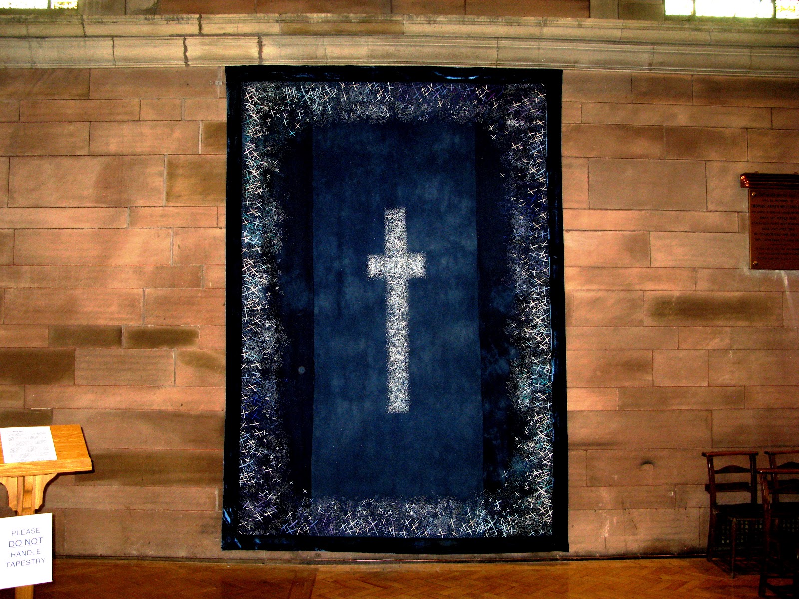 Here is what I wanted mom to see at St. Anne's: the Titanic Pall. Each cross floating out into the Moroccan felt represents one of the victims of the sinking, with the cross representing the ship.