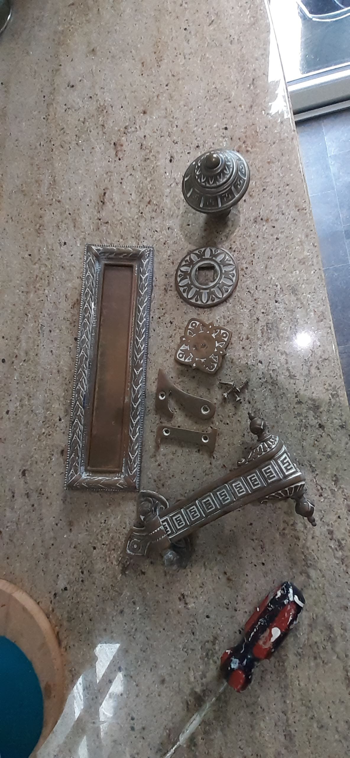 In addition to golf and work, I've been hiking two hours in the mornings to prepare for Yorkshire. I may have worn Paddy out. A neighbour cleaned her door brasses and gave me a sachet of chemicals that she used. So I added this to the to do list.