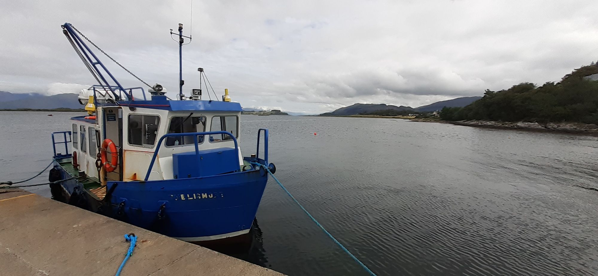 Above is Stalker's Castle. As in deer stalker. There are lots of stalker's paths as well. This is what greats me when I get to the pier in Port Appin where I catch the ferry. There are few people in the world who dislike seafood as strongly as I do.