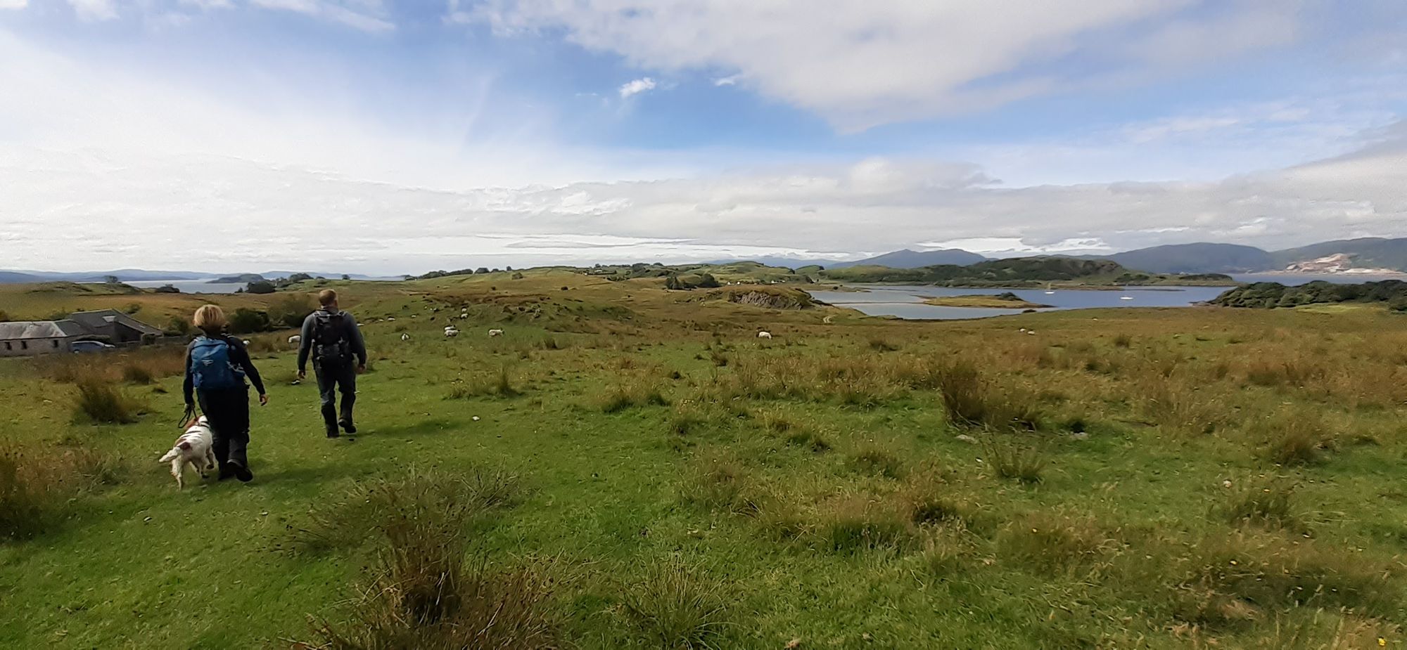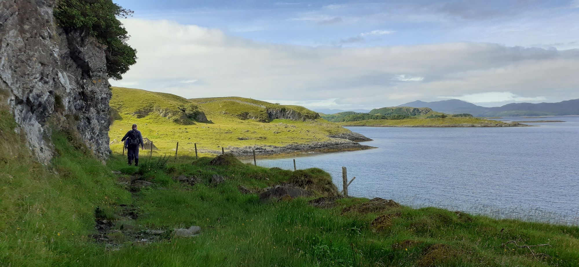 On the ferry I met Julie and Steve from Yorkshire and their springer, Molly. They were going the same way I was so I had the luxury of following them instead of reading the eight laminated cards with directions from HF Holidays. There aren't a lot of paths on the island so directions have you looking for gates and crossing fields and so on. Julie and Steve have been on the island many times so I was in good hands. Steve leading the way.