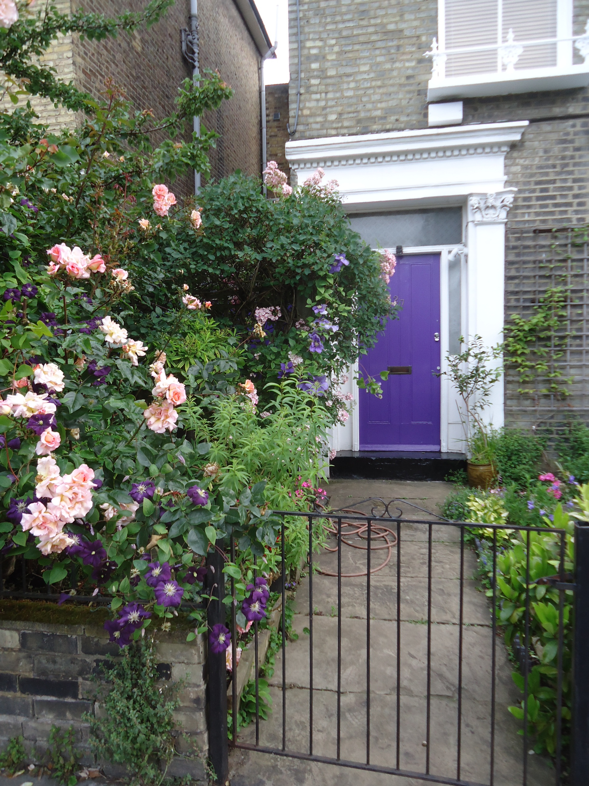 When I walk back and forth between the tube station and Carolyn’s, I get to peek at some lovely gardens. Here’s one: