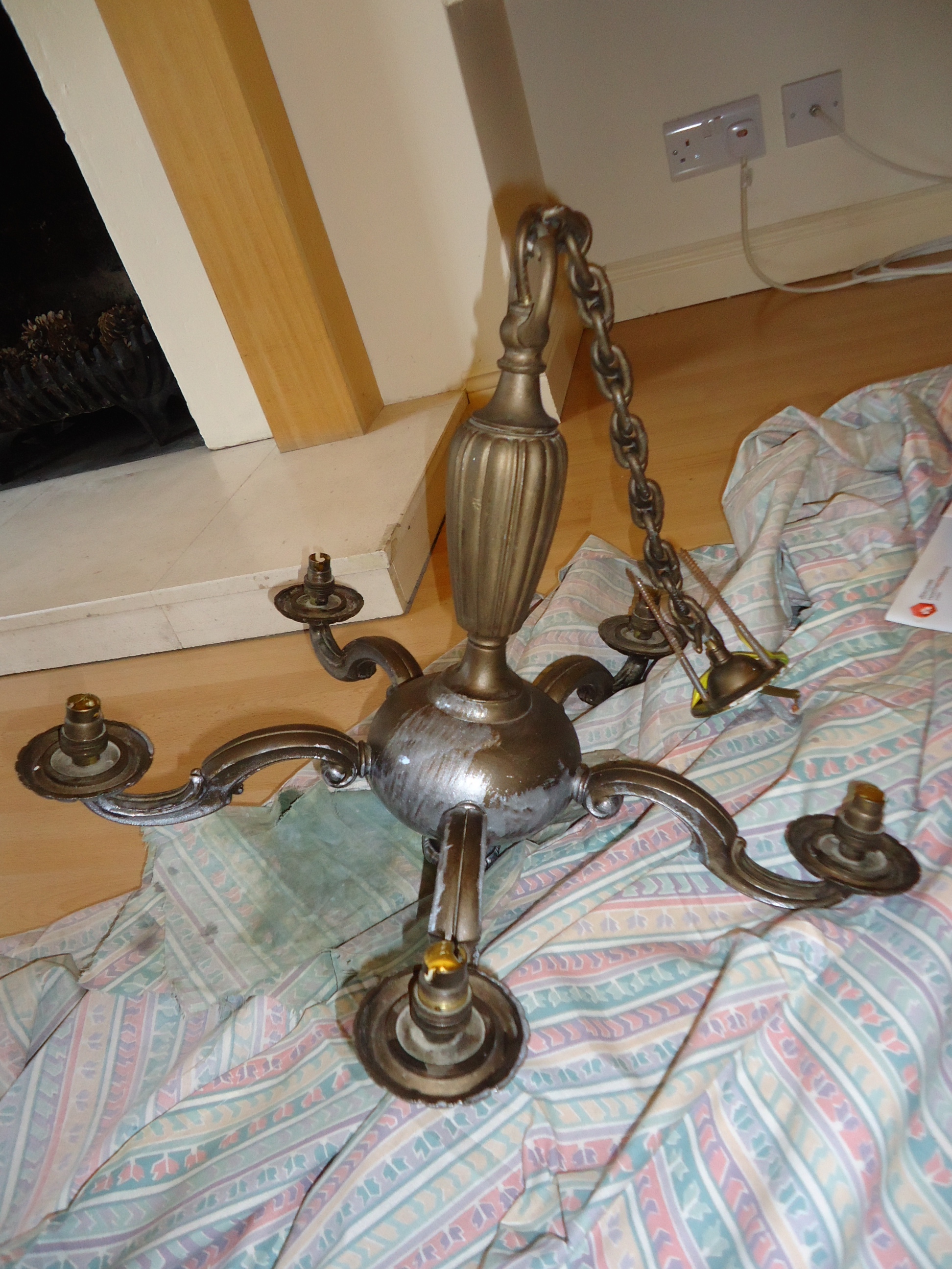We sold all but two of our lamps in the U.S., due to the change in voltage here, and so having overheads in each room is important. I still have two rooms without a light. But they aren't as important as the remaining rooms. I'm trying to get all my fixtures ready to go so that when the electrician is in to do the final wiring, he can hang them. Both of these chandeliers will need a ground (which they call earth here--isn't that interesting?).