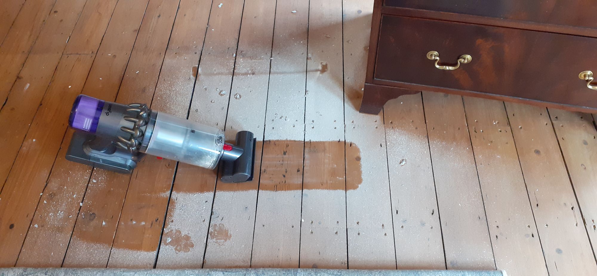 After that I spent about three weeks with a scrub brush and sponges, getting off a layer of glue and bits of paper.