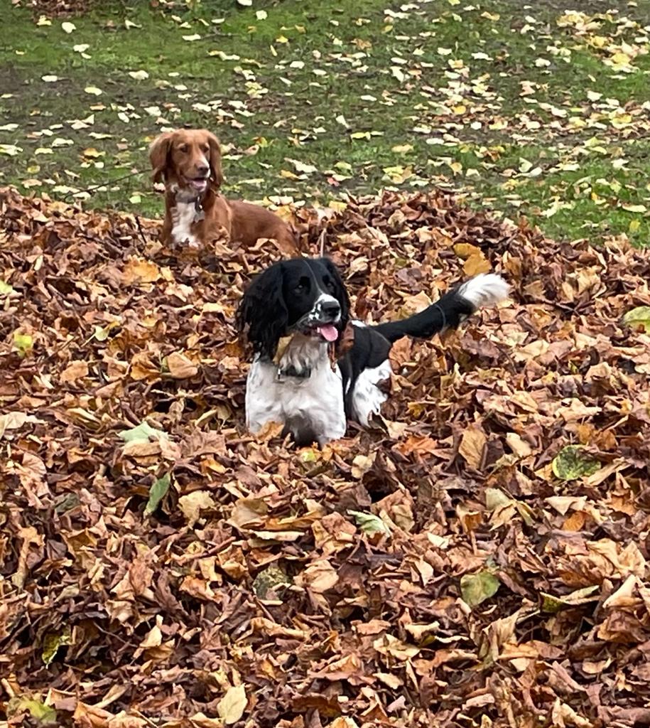 On Saturday I started the day as usual at Stormont with my neighbours and their dogs. We came upon a guy whose dog had lost a ball in a pile of leaves. We 'helped.'