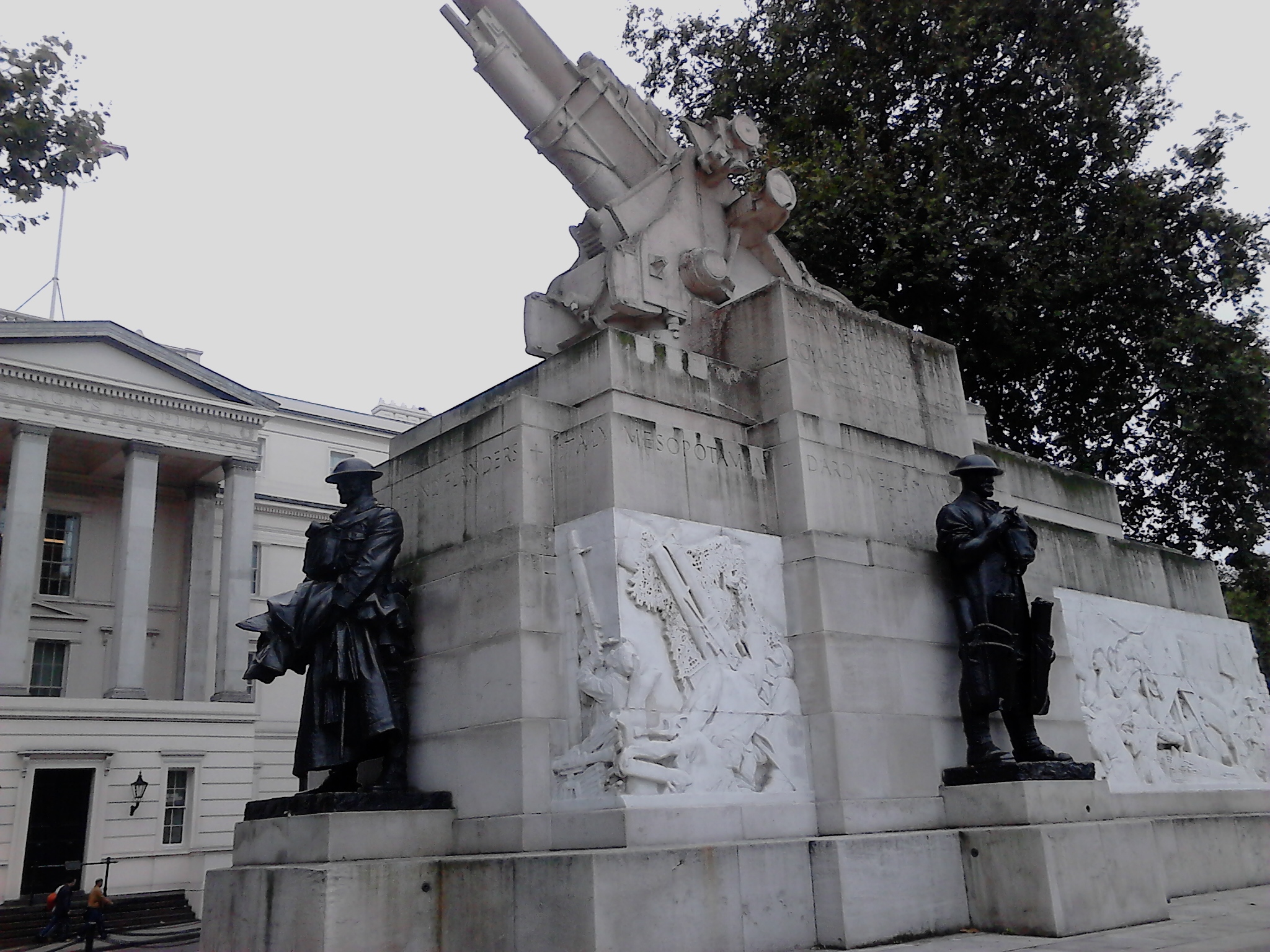 Near these monuments are many more to Australian soldiers, Kiwis, those who served in colonial armies (from Africa, the Caribbean, and the Asian subcontinent). This monument was to the artillery forces in WWI: