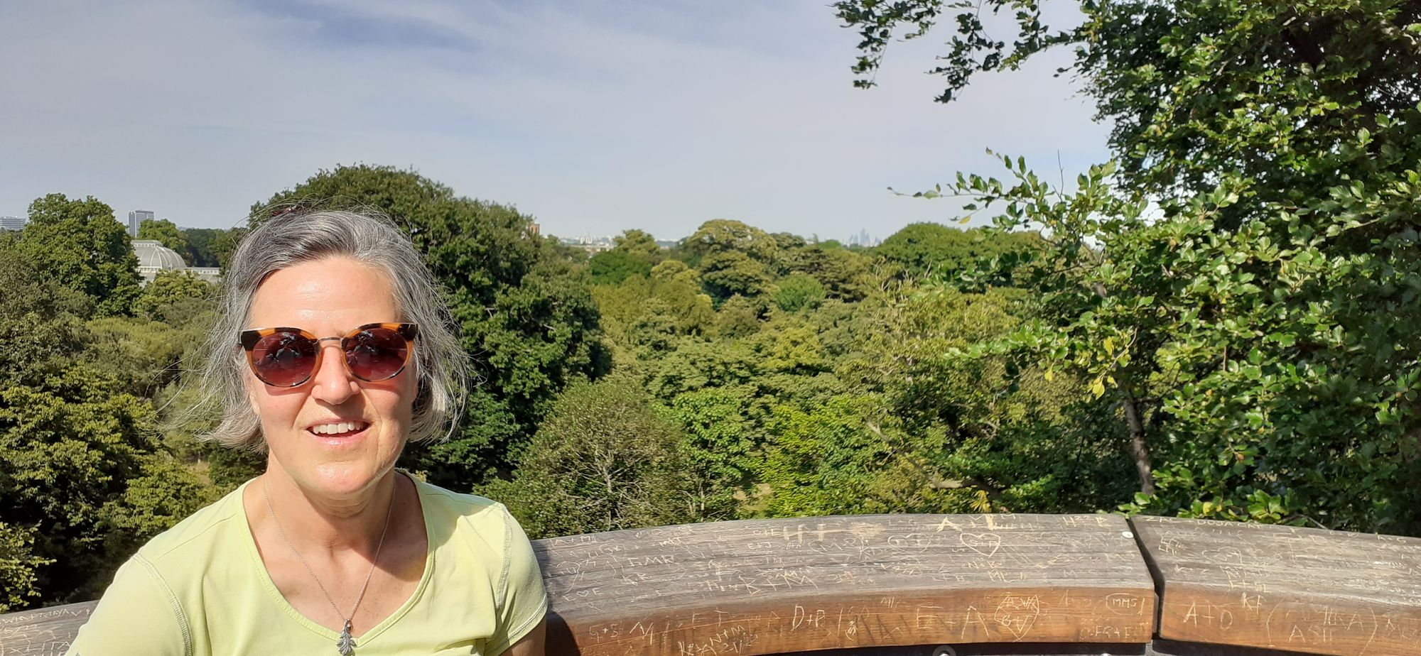 I would have taken more photos but I was trying to keep up with the group. Below is me on a treetop walkway with one of the greenhouses in the background. Photo taken by my manager, Mark. I should say my impressions of Kew are probably not fair, as I saw less than half of it.