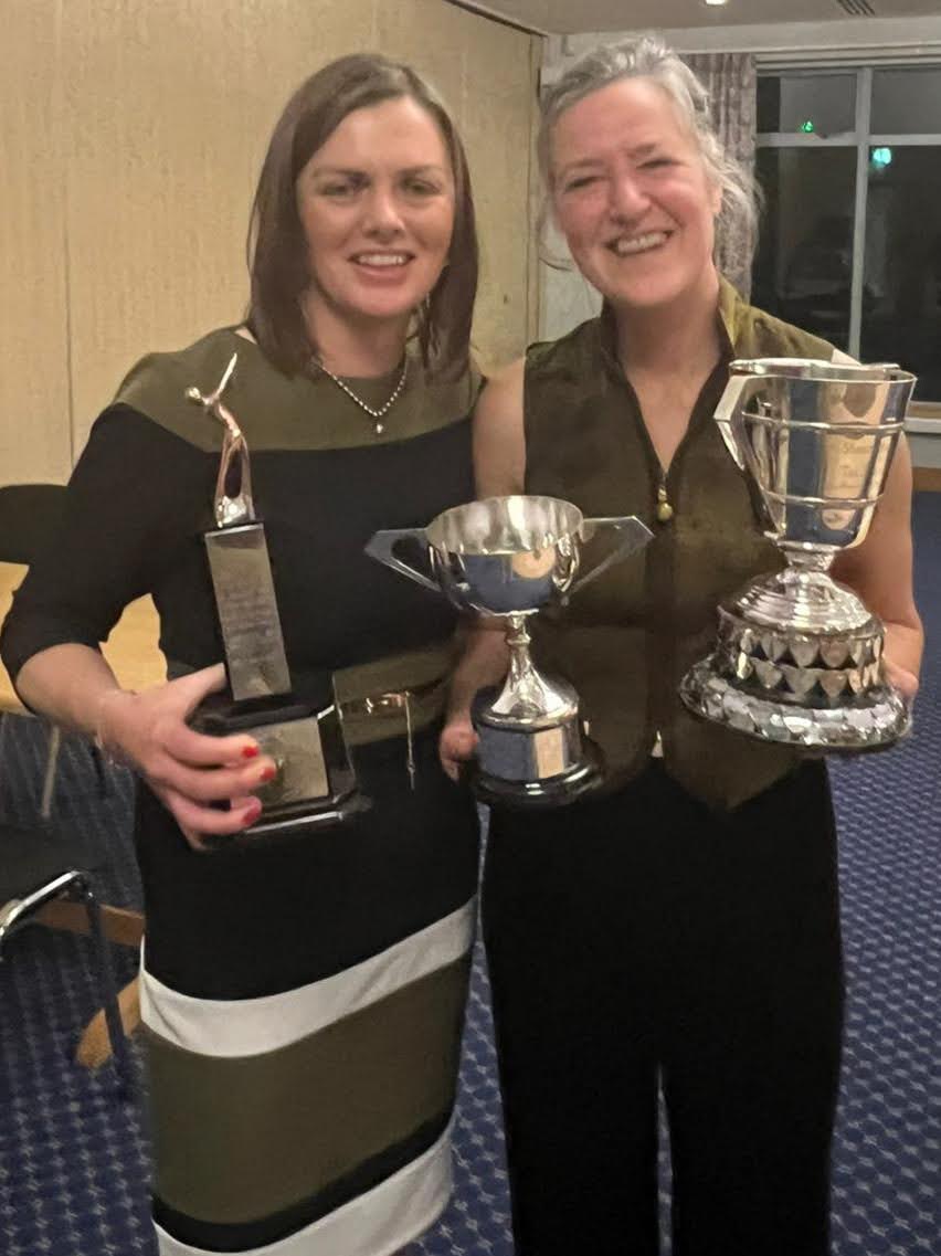 In the meantime, I enjoy golf more than I care to mention. Saturday night was annual awards night and here I am with my two trophies and my friend Paula, whose husband is my coach.