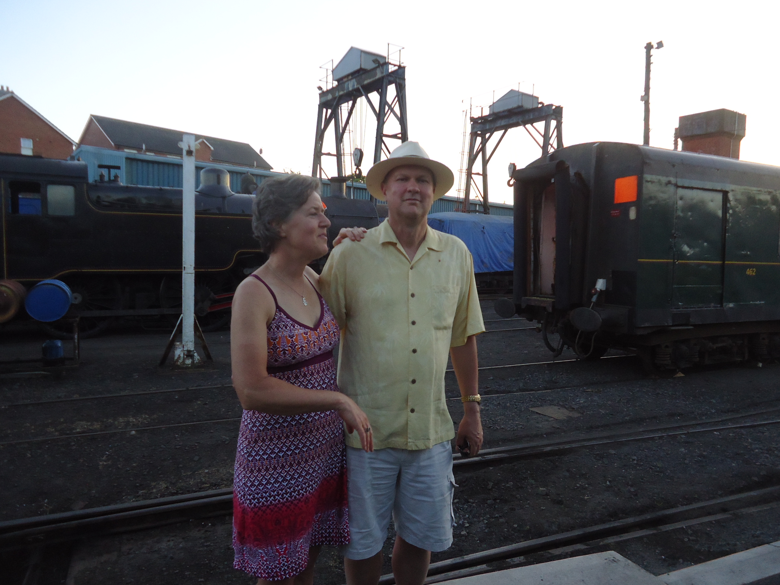 Once in Belfast, we put together a picnic dinner hastily then drove into the city, where we got on a steam train--David’s birthday present. The train runs only a few times a year. On board is a jazz band that plays on the platforms.
