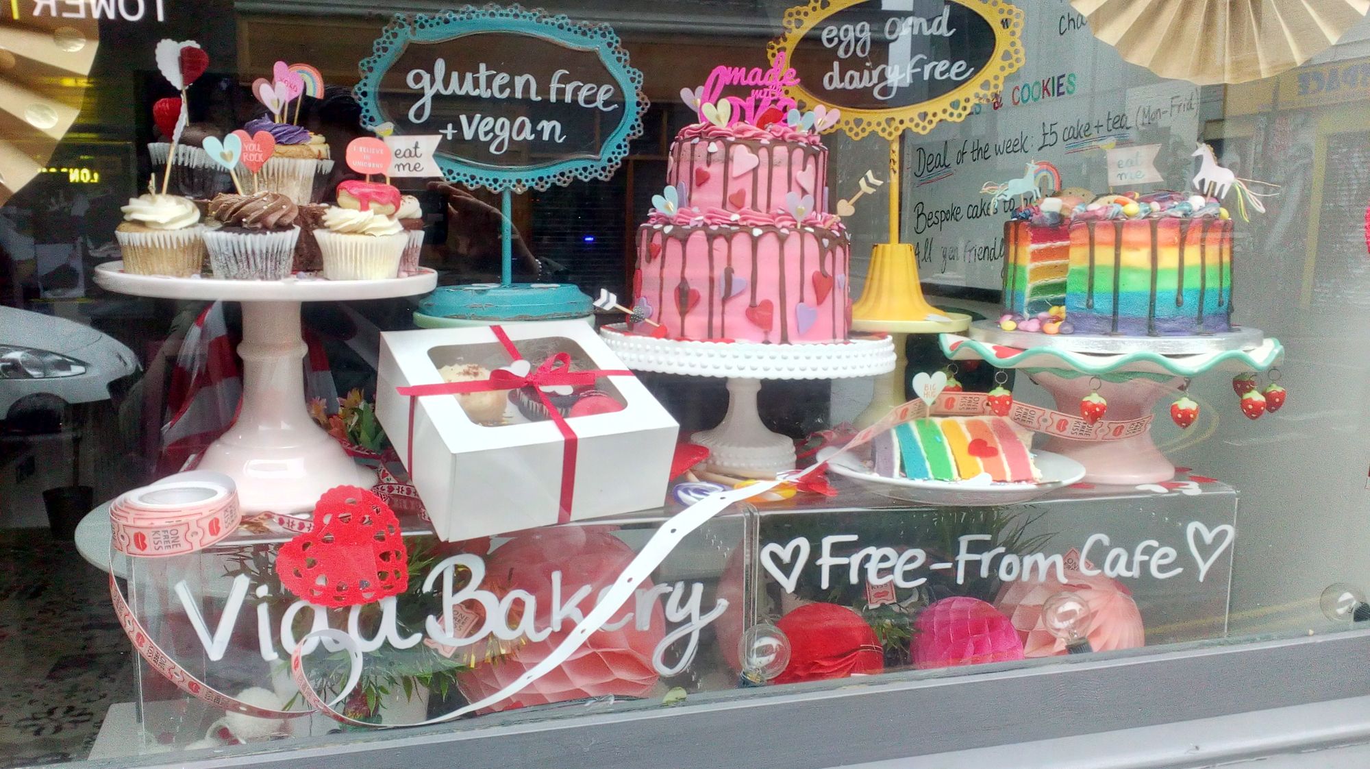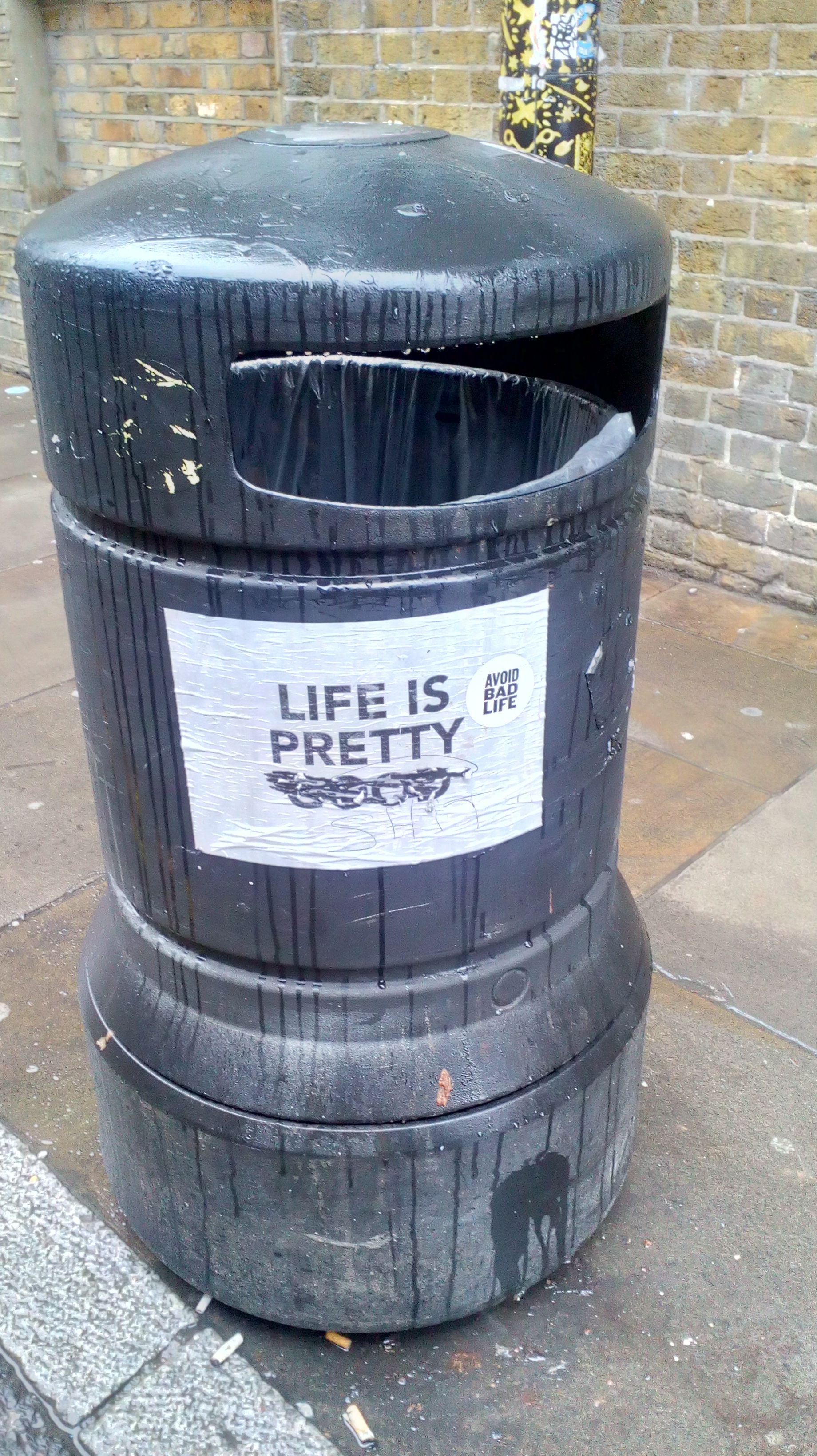 There's random things like above: Life is Pretty. Avoid bad life. And lots of cake stores.