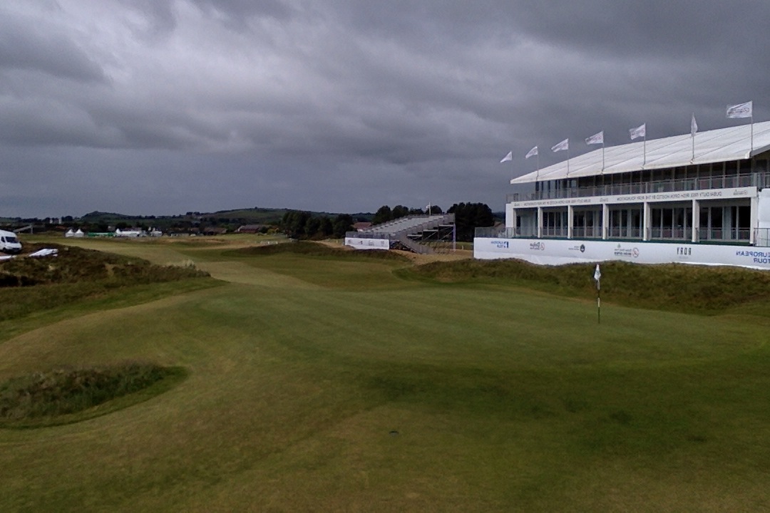 Here's the view from the grandstand over the 18th hole. This would have been a high-priced view a few days ago: