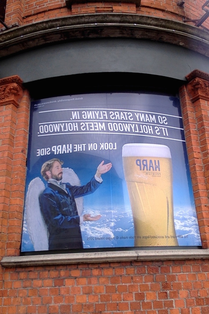 I forgot my camera so I took photos on my laptop, which reverses everything. See if you can make out the clever ads: