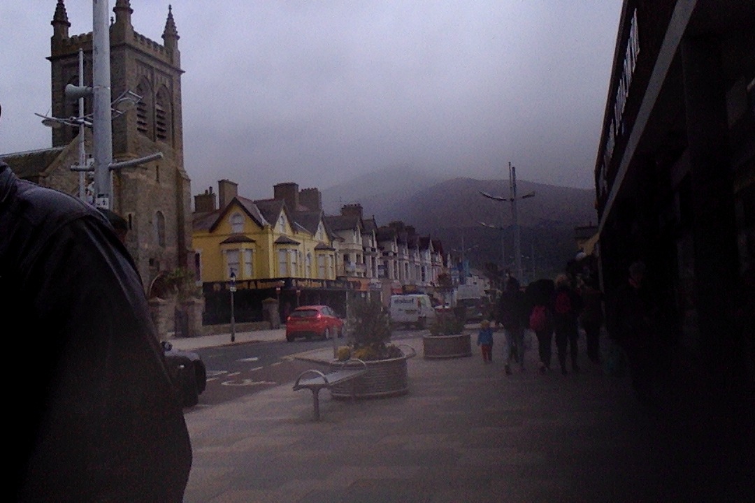 So I was in Newcastle, home of RCD, today because R&B wanted to hike Slieve Donard, the highest peak among the Mourne Mountains and the highest in Ulster. Newcastle is at its base. Unfortunately, the weather was no kinder to them than the golfers. Slieve Donard is up there in the mist somewhere.