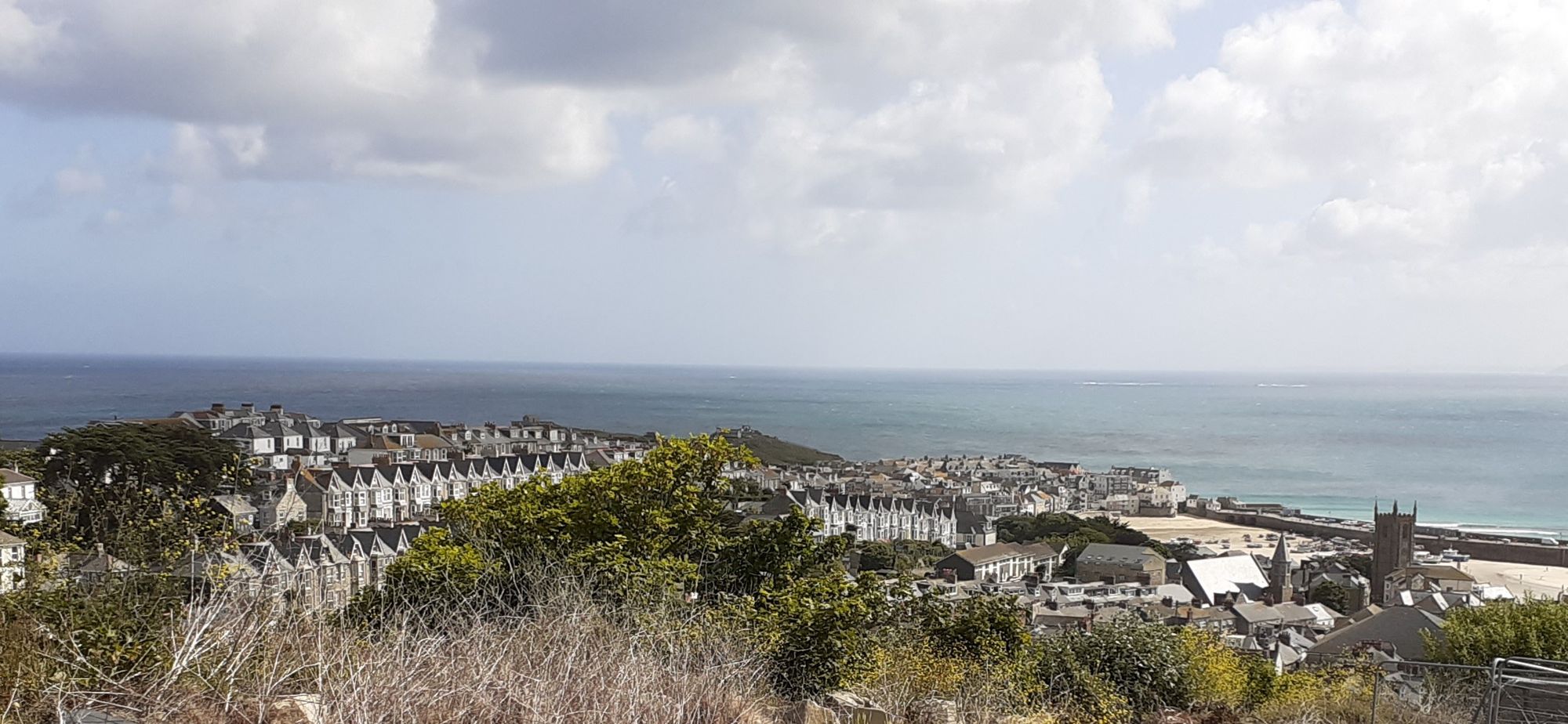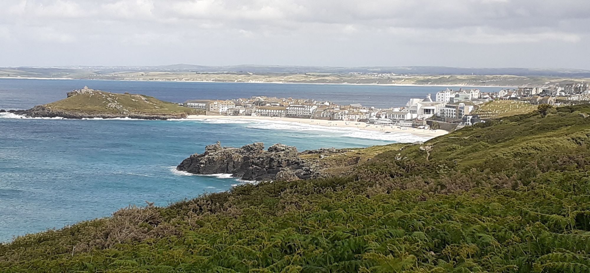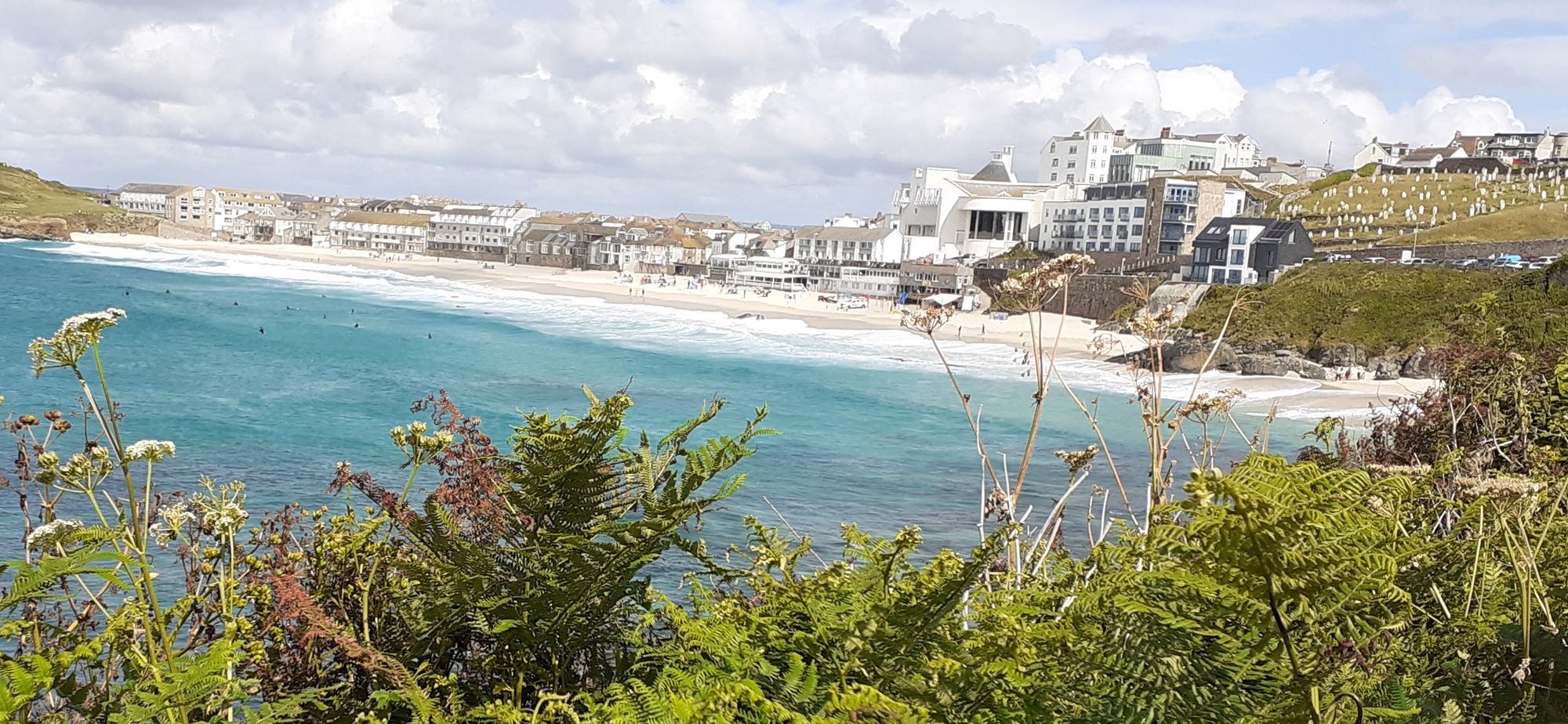 He felt awful about straying off piste. When we got to town, he bought us all ice cream! My photo yesterday was of the harbour side of St. Ives. This is the other side, where surfers ply their trade. The big white building on the right is the Tate St. Ives.