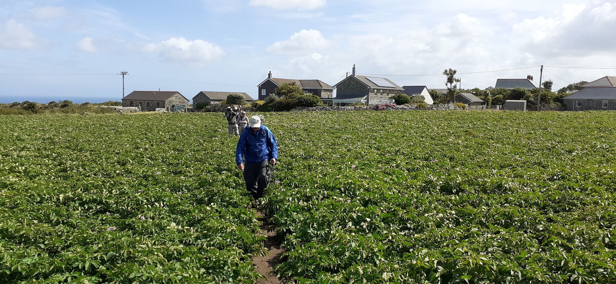 We hiked inland on a public path through fields. This is a potato field. Another field had cows in it. Bill Bryson commented on how remarkable it is that the public can traipse all over Britain due to the generosity of landowners. I guess these paths are millenia old so the landowners have no choice.