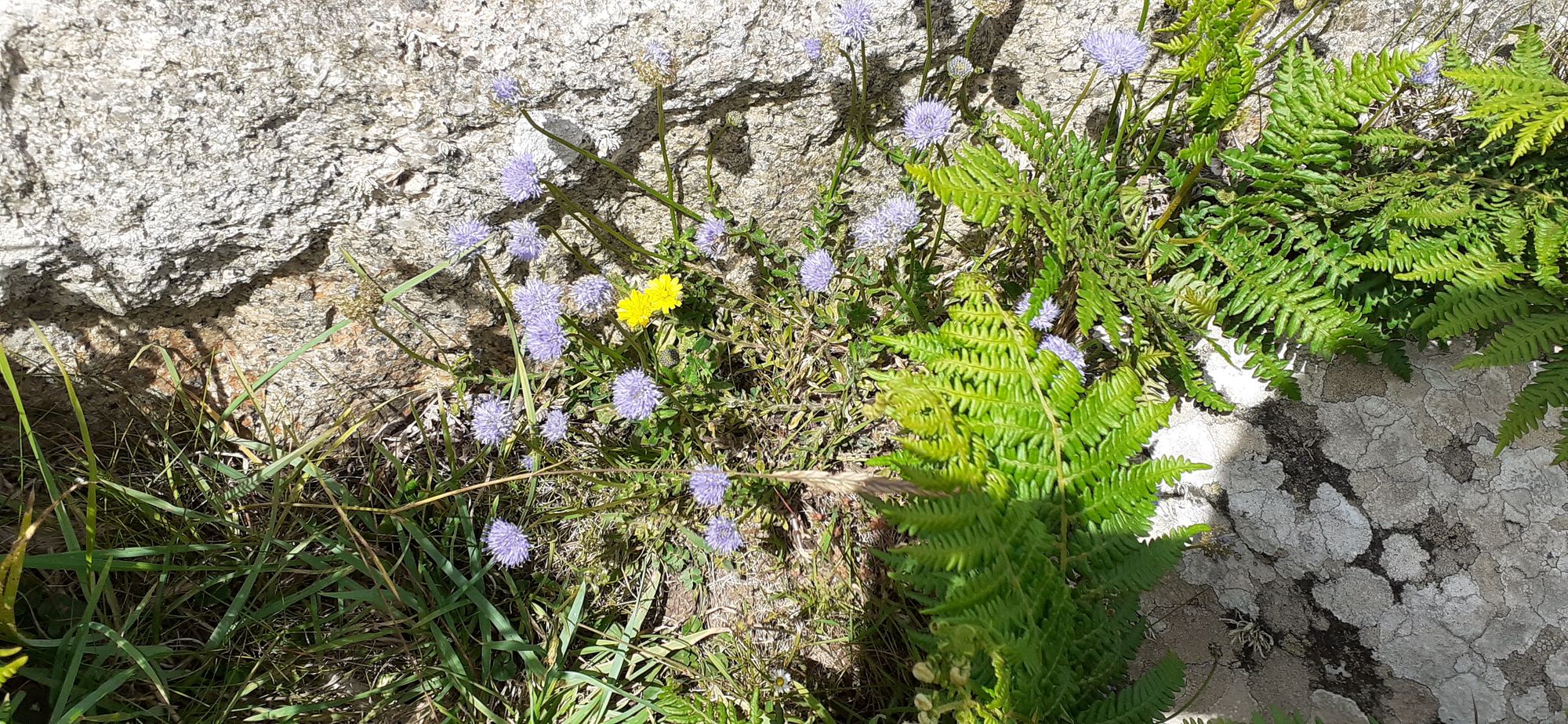 Scabious, or pincushion, below. This photo failed to capture the intense blue color of the flowers. Most of my photos don't capture the full range of blues/greens/aquamarines on show all day.
